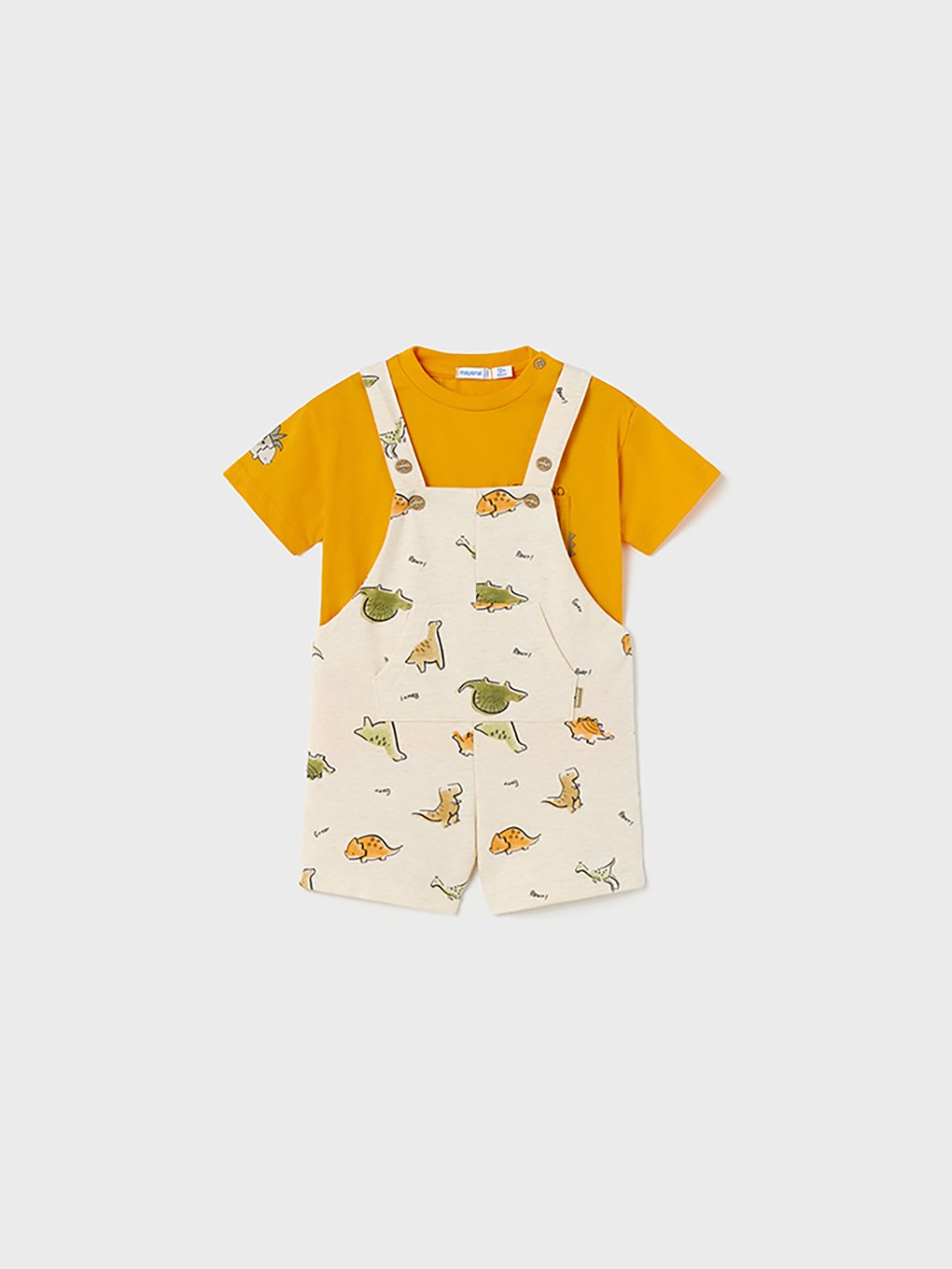 Set trička v kombinaci se sladěnými kraťasy s laclem pro chlapečky. Zapínání na knoflík. Funkční kapsa na přední straně. Tričko s krátkým rukávem a kulatým výstřihem.Doplňkové parametry
