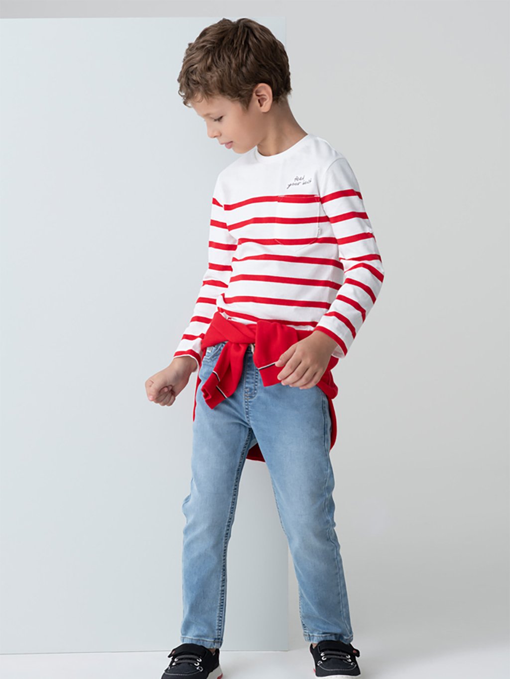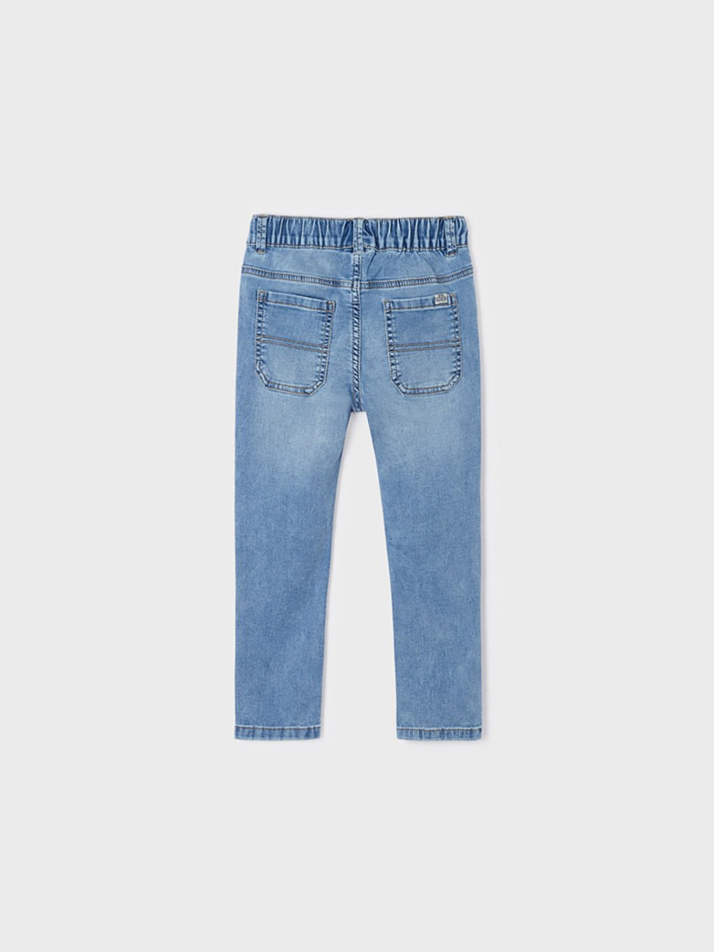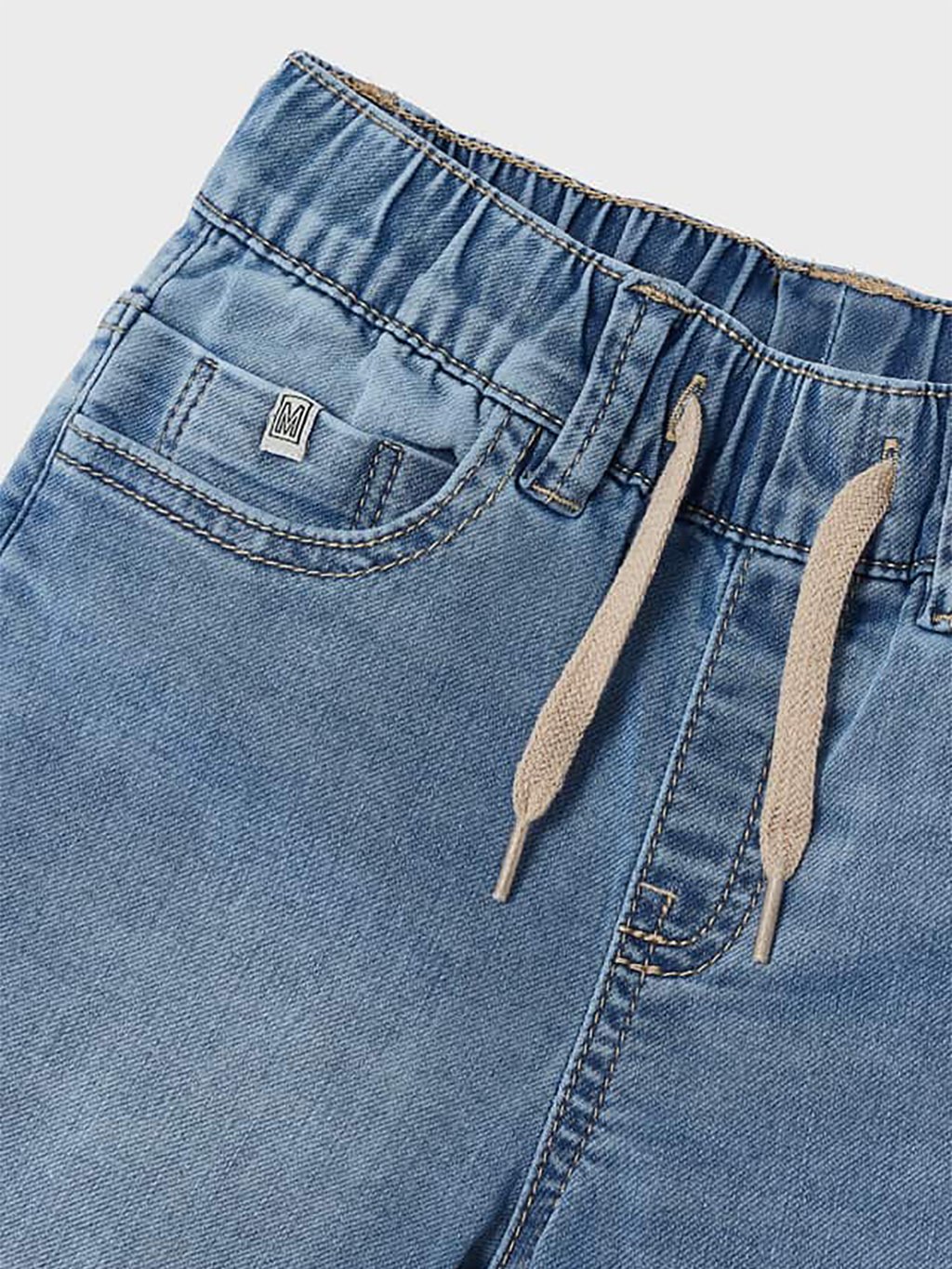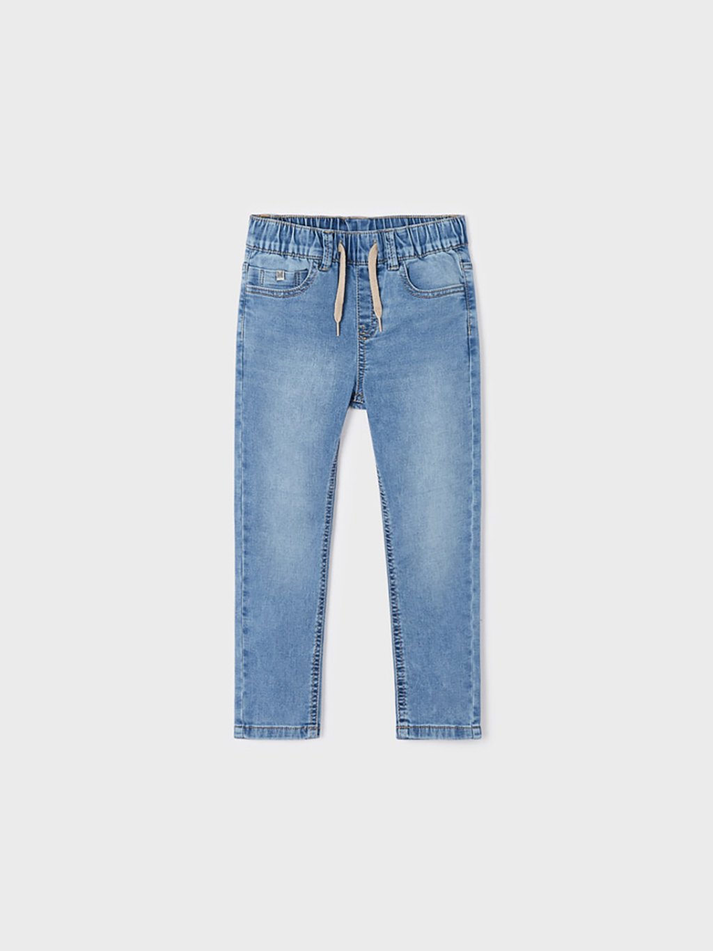 Džíny obsahují udržitelnou bavlnu. Dlouhé kalhoty typu jogger pro chlapce, nahoře volné, u kotníku užší. Pas s nastavitelnou vnitřní šňůrkou. Moderní džínovina se sepraným a obnošeným efektem.Doplňkové parametry
