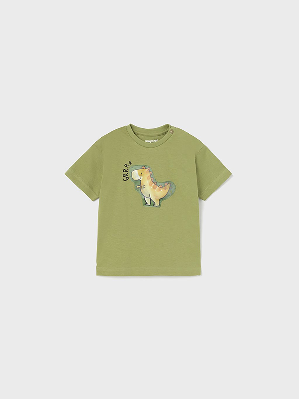 Tričko s krátkým rukávem a kulatým výstřihem. Zapínání na knoflík na rameni. 100% bavlněná tkanina.Triko s interaktivním motivem.Doplňkové parametry
