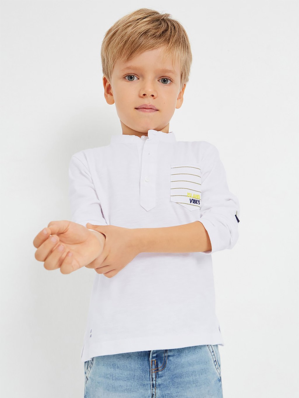 Polo tričko s dlouhým rukávem pro chlapce. Model s mao límcem. Funkční kapsa na přední straně.Doplňkové parametry