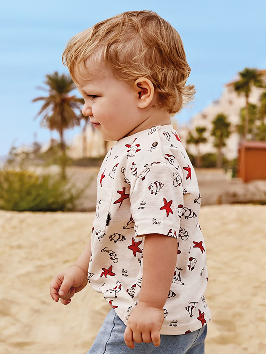 Chlapecké triko obsahuje udržitelnou bavlnu. Tričko s krátkým rukávem a kulatým výstřihem. Zapínání na knoflík na rameni. Funkční kapsa na přední straně.Doplňkové parametry