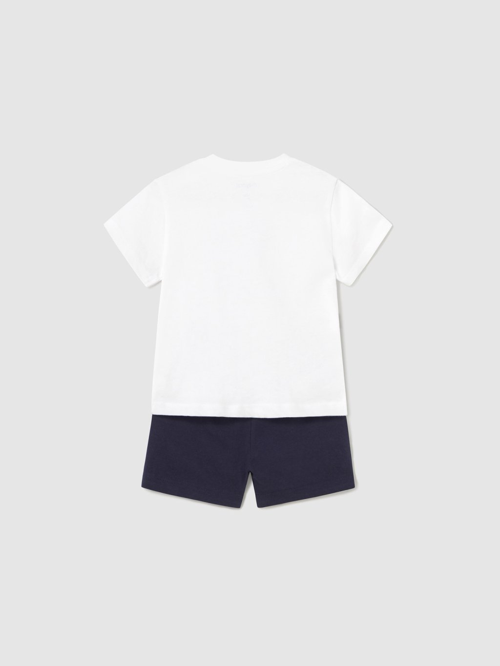 Chlapecký set trička a kraťasů. Chlapecké tričko s krátkým rukávem a kulatým výstřihem. Kraťasy s elastickým pasem a stahovací šňůrkou. Funkční kapsy na přední straně.Doplňkové parametry