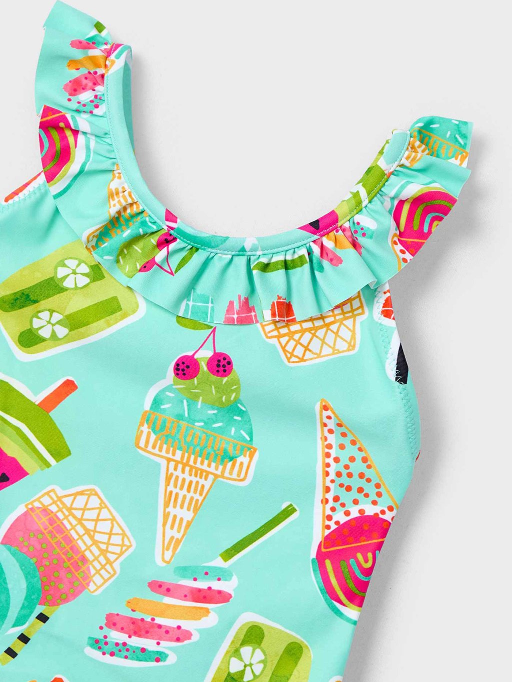 Dívčí jednodílné plavky s roztomilým vzorem zmrzlinek. Volánek v horní části.Doplňkové parametry