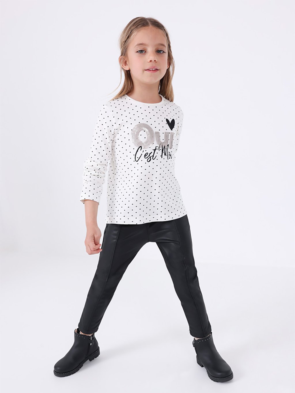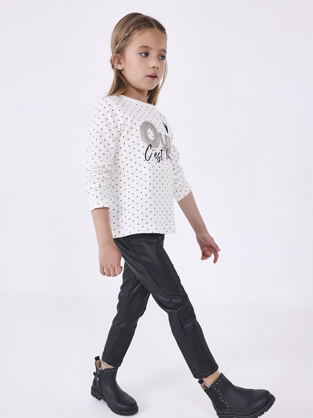 Dívčí koženkové legíny s gumou v pase pro větší komfort při nošení. Legíny mají ozdobné prošívání.Doplňkové parametry
