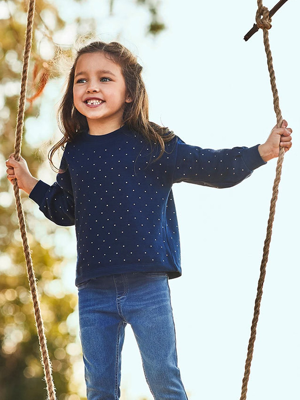 Mikina s dlouhým rukávem a elastickými manžetami. Kulatý výstřih. Dekorativní prvky: cvočky.Doplňkové parametry