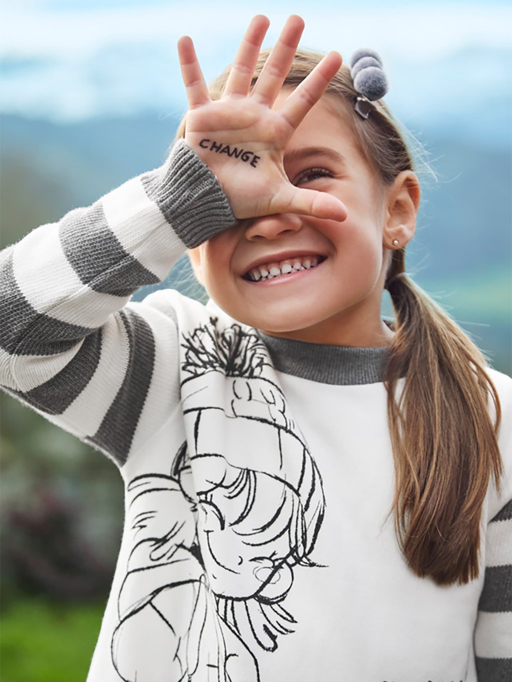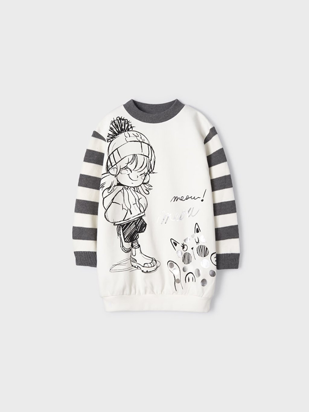 Dívčí mikinové šaty s dlouhým rukávem. Pletené rukávy.Doplňkové parametry