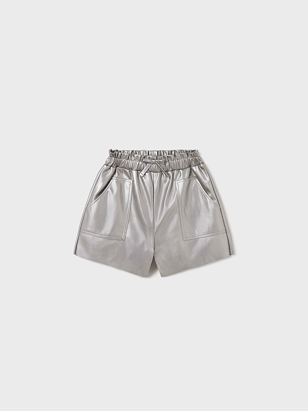 Dívčí kraťasy z umělé kůže. Mají elastický pas se stahovací šňůrkou a nápadné kapsy.Doplňkové parametry