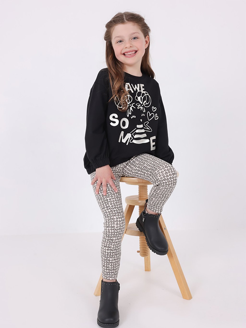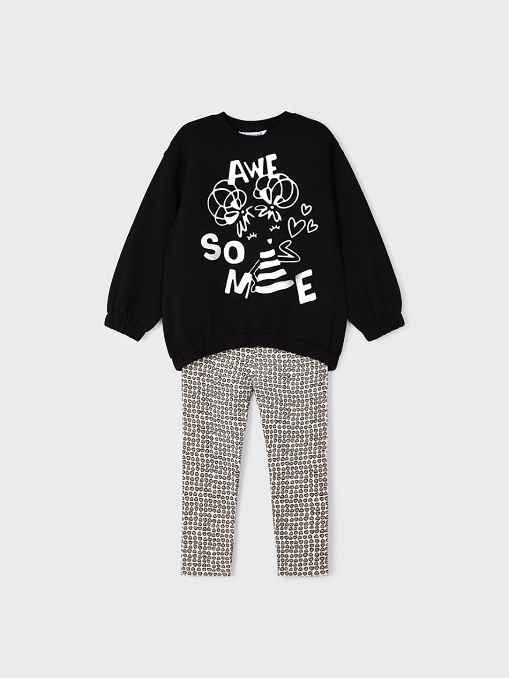 Dívčí souprava legín se vzorem a mikiny s potiskem Mayoral