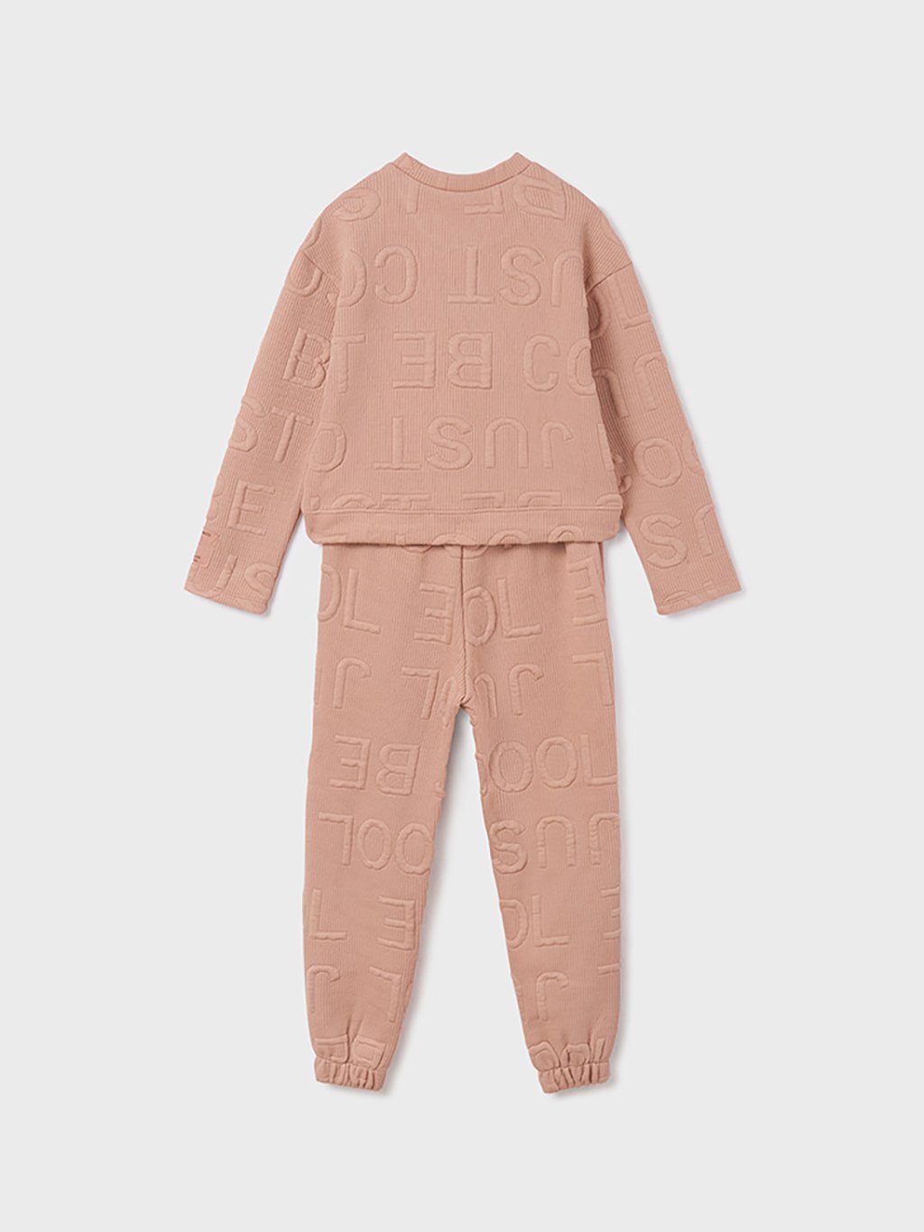 Stylová dvoudílná sada pro dívky. Dívčí mikina s dlouhým rukávem a kulatým výstřihem. Mikina má v dolní části stahovací šňůrku. Dlouhé kalhoty mají elastický pas pro lepší přizpůsobení postavě.Doplňkové parametry
