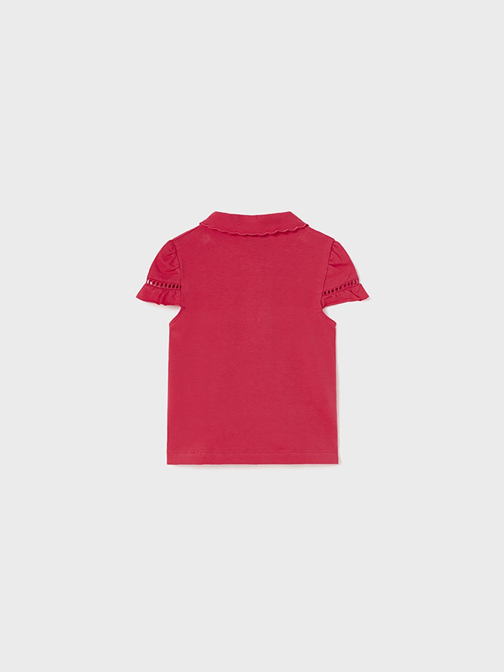 Dívčí triko obsahuje udržitelnou bavlnu. Polokošile s krátkým rukávem s volánovými detaily. Zapínání na knoflík.Doplňkové parametry