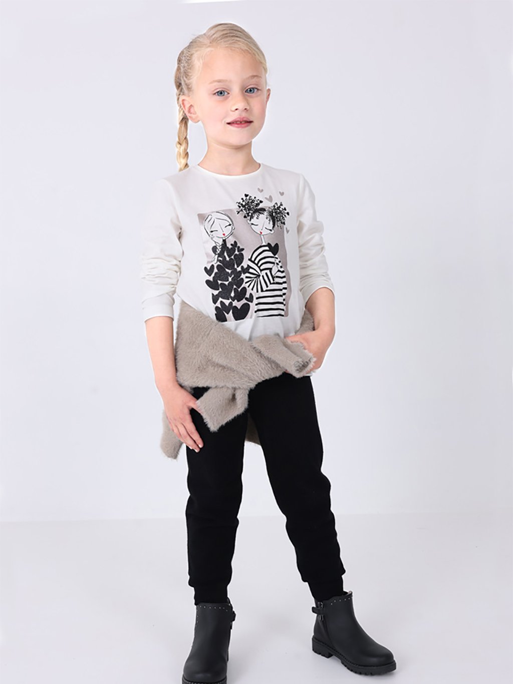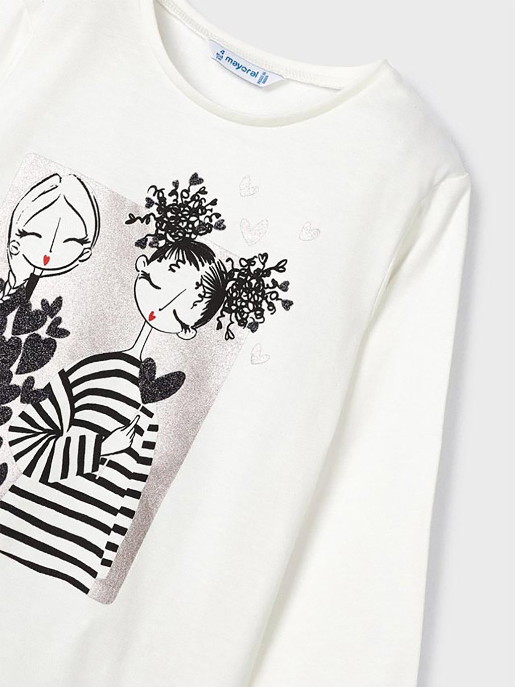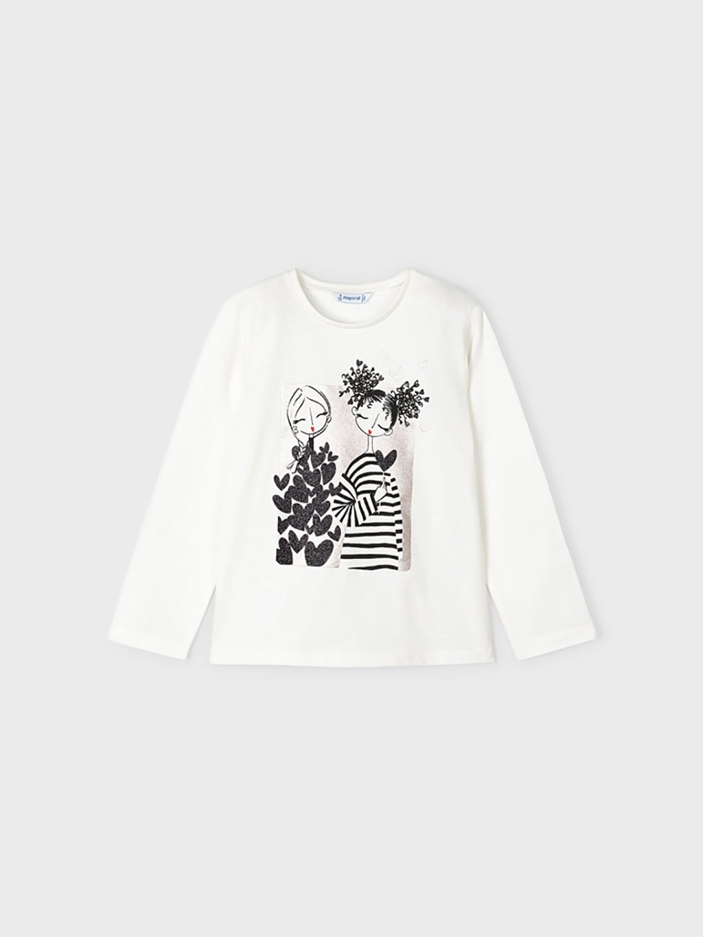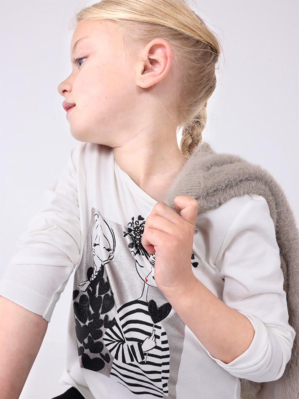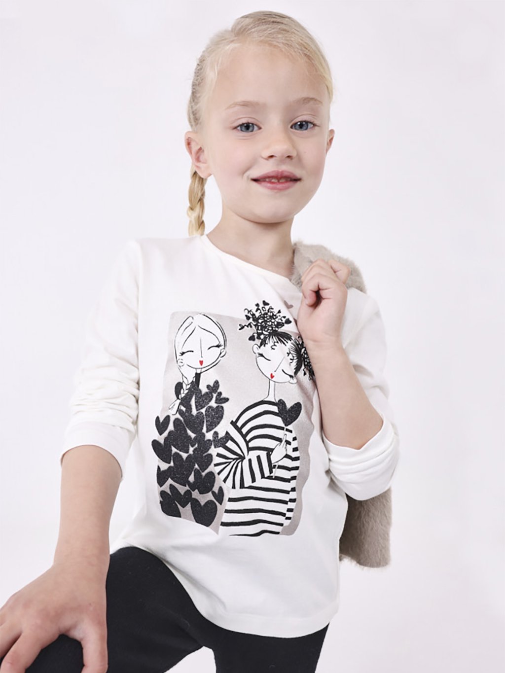 Dívčí triko s dlouhým rukávem a černobílým potiskem Mayoral