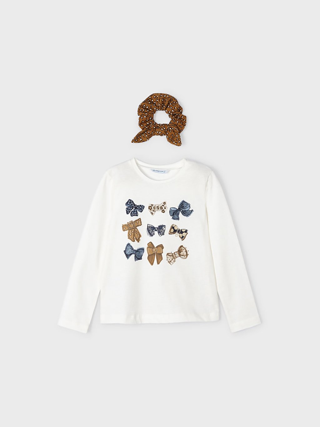 Dívčí triko s mašličkami a gumičkou do vlasů Mayoral