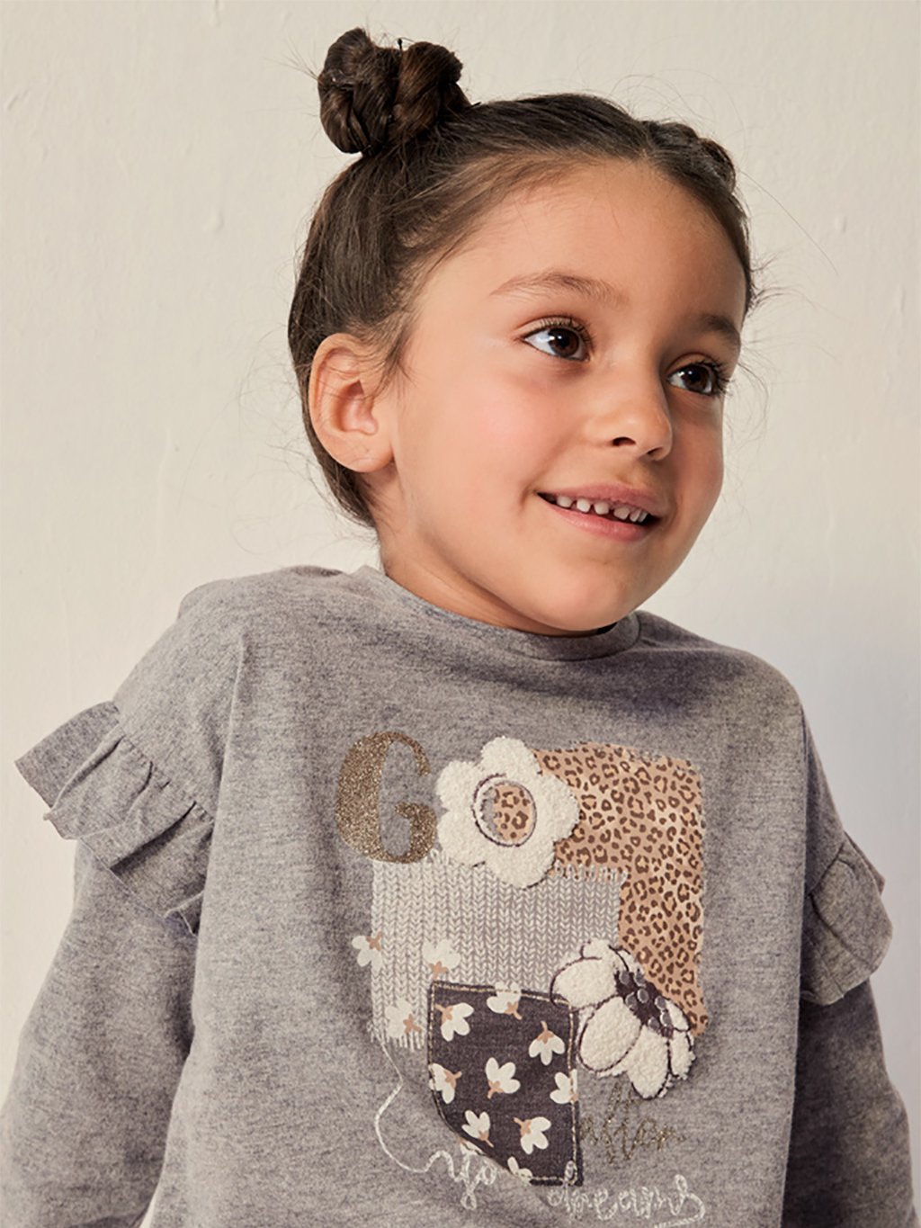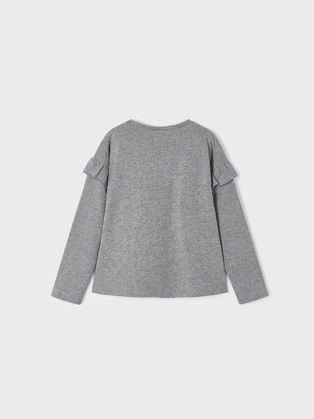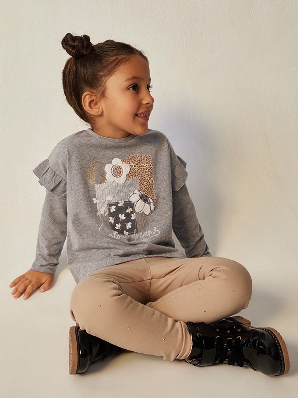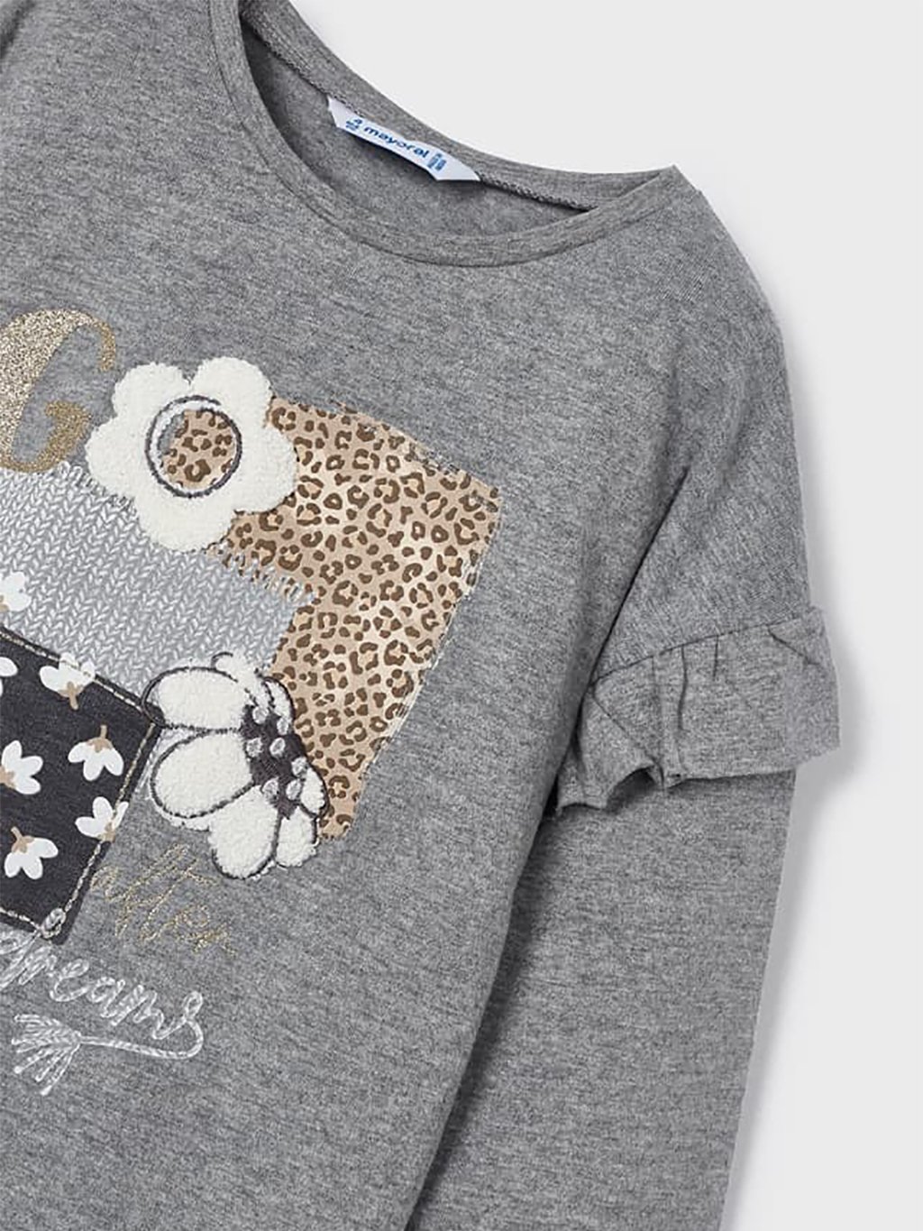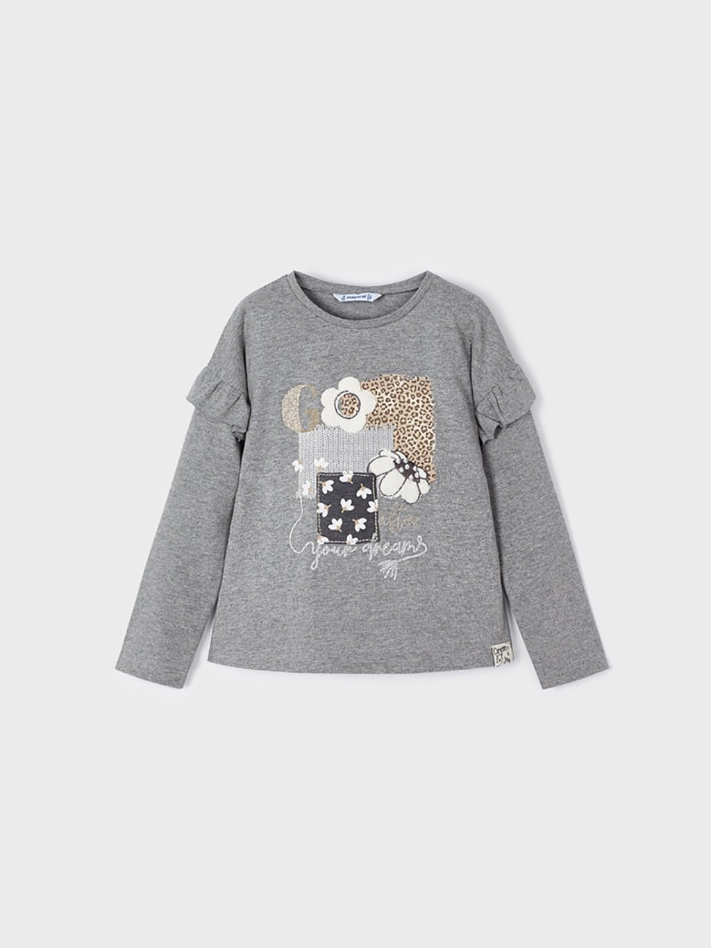 Dívči triko s potiskem a ozdobnými rukávy Mayoral