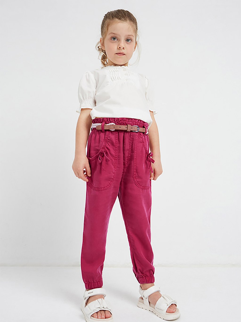 Dívčí kalhoty s elastickým pasem pro lepší přizpůsobení. Funkční kapsy na přední straně. Součástí kalhot je pásek.Doplňkové parametry