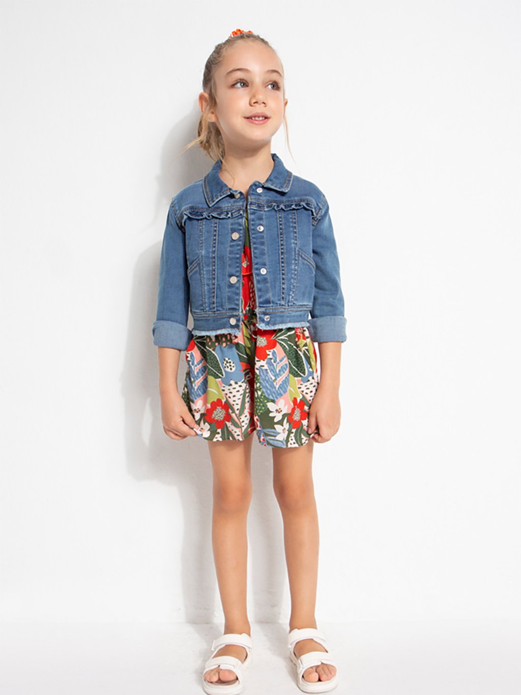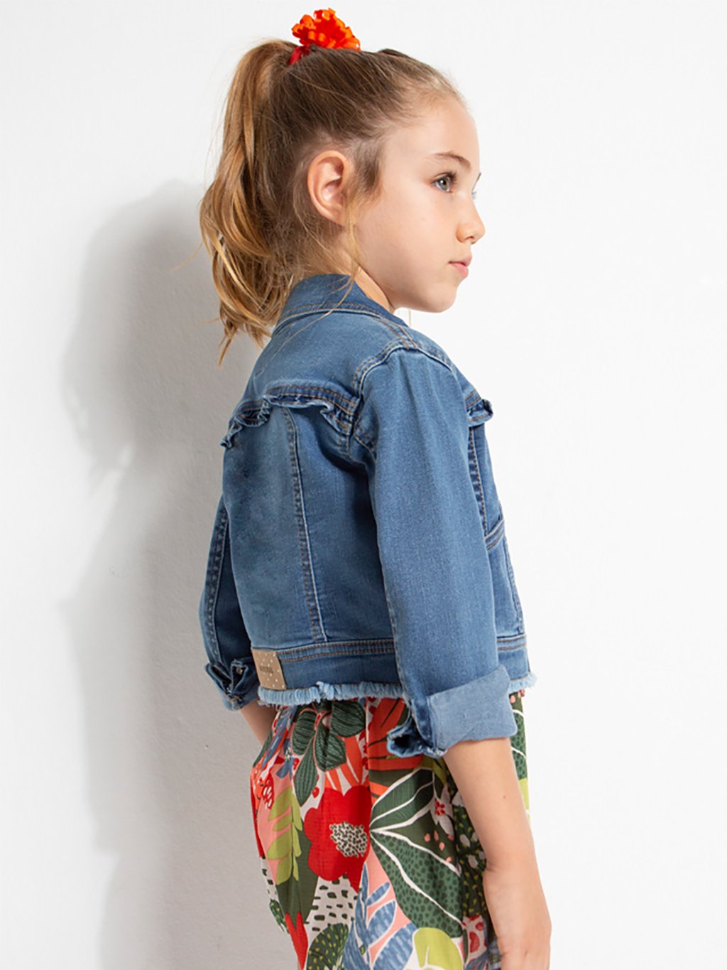 Dívčí bunda s dlouhým rukávem. Zapínání na knoflík na přední straně. Měkká strečová bavlněná tkanina. Boční kapsy.Doplňkové parametry