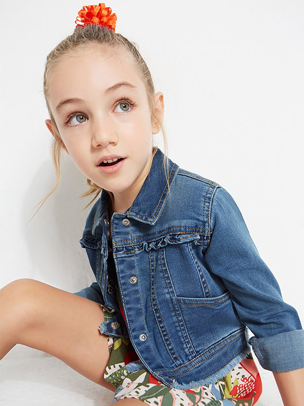 Dívčí bunda s dlouhým rukávem. Zapínání na knoflík na přední straně. Měkká strečová bavlněná tkanina. Boční kapsy.Doplňkové parametry