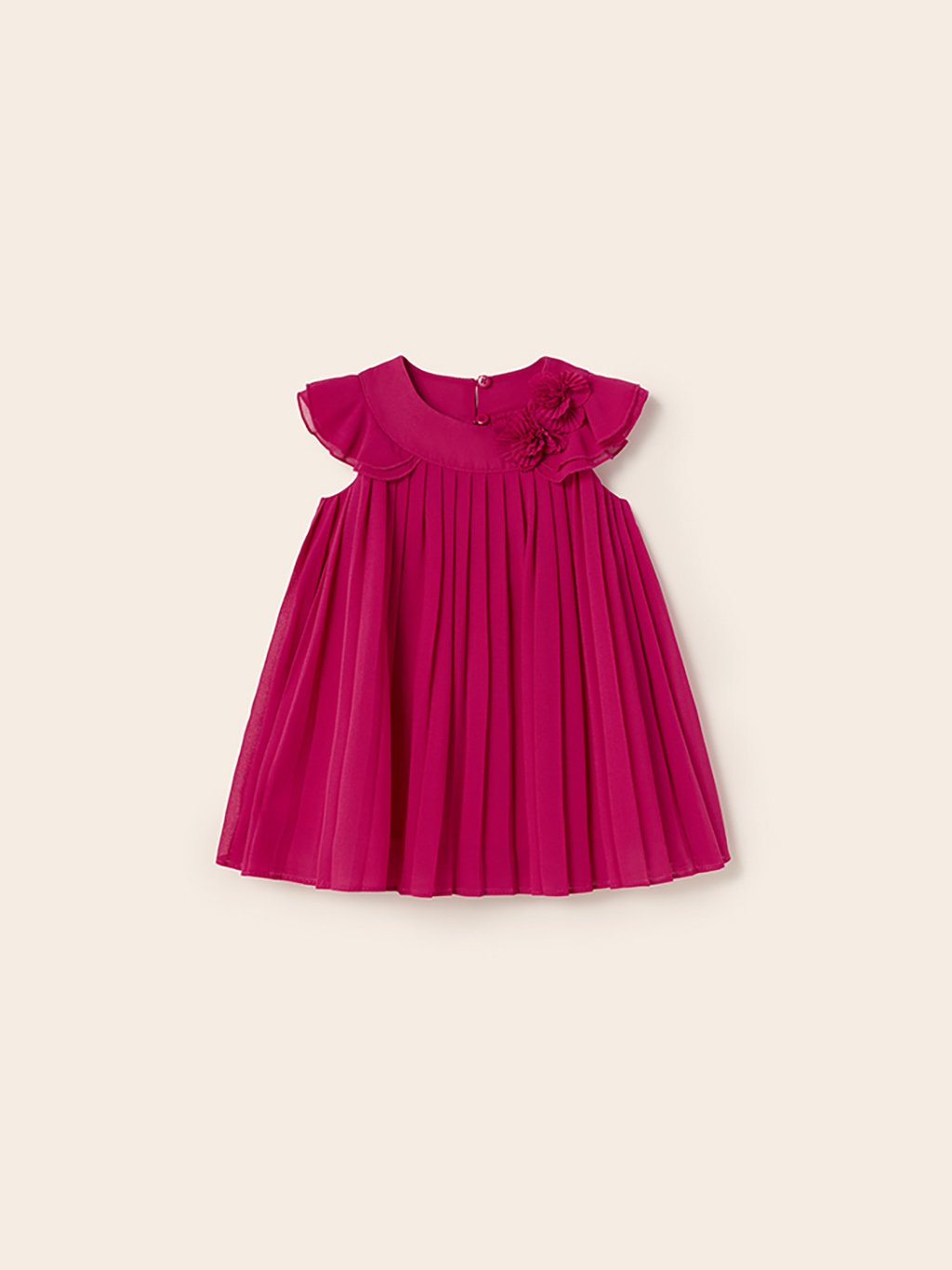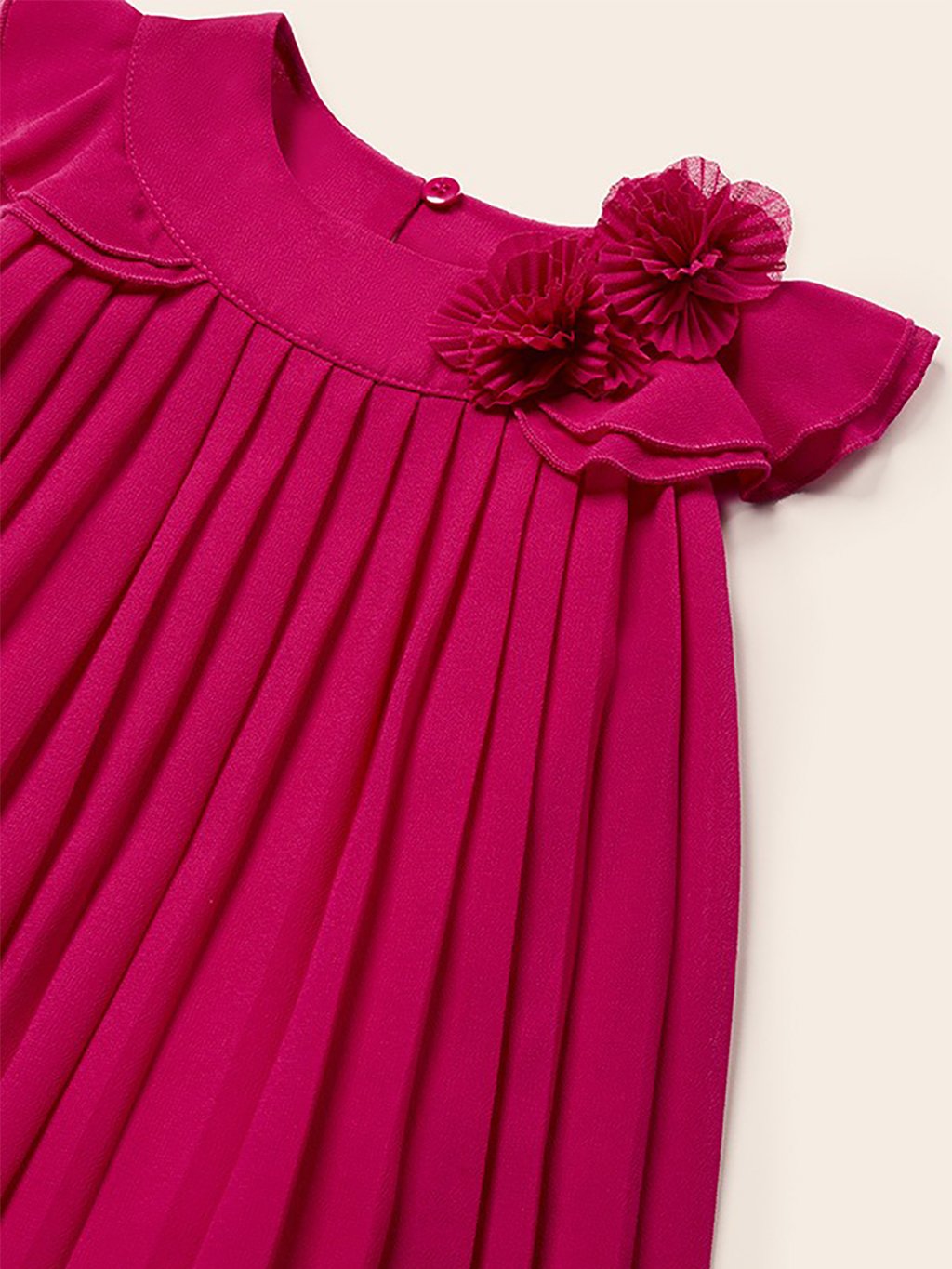 Elegantní plisované šaty pro malé dívky. Dekorativní prvky: květinová aplikace, ozdobné volánky.Doplňkové parametry