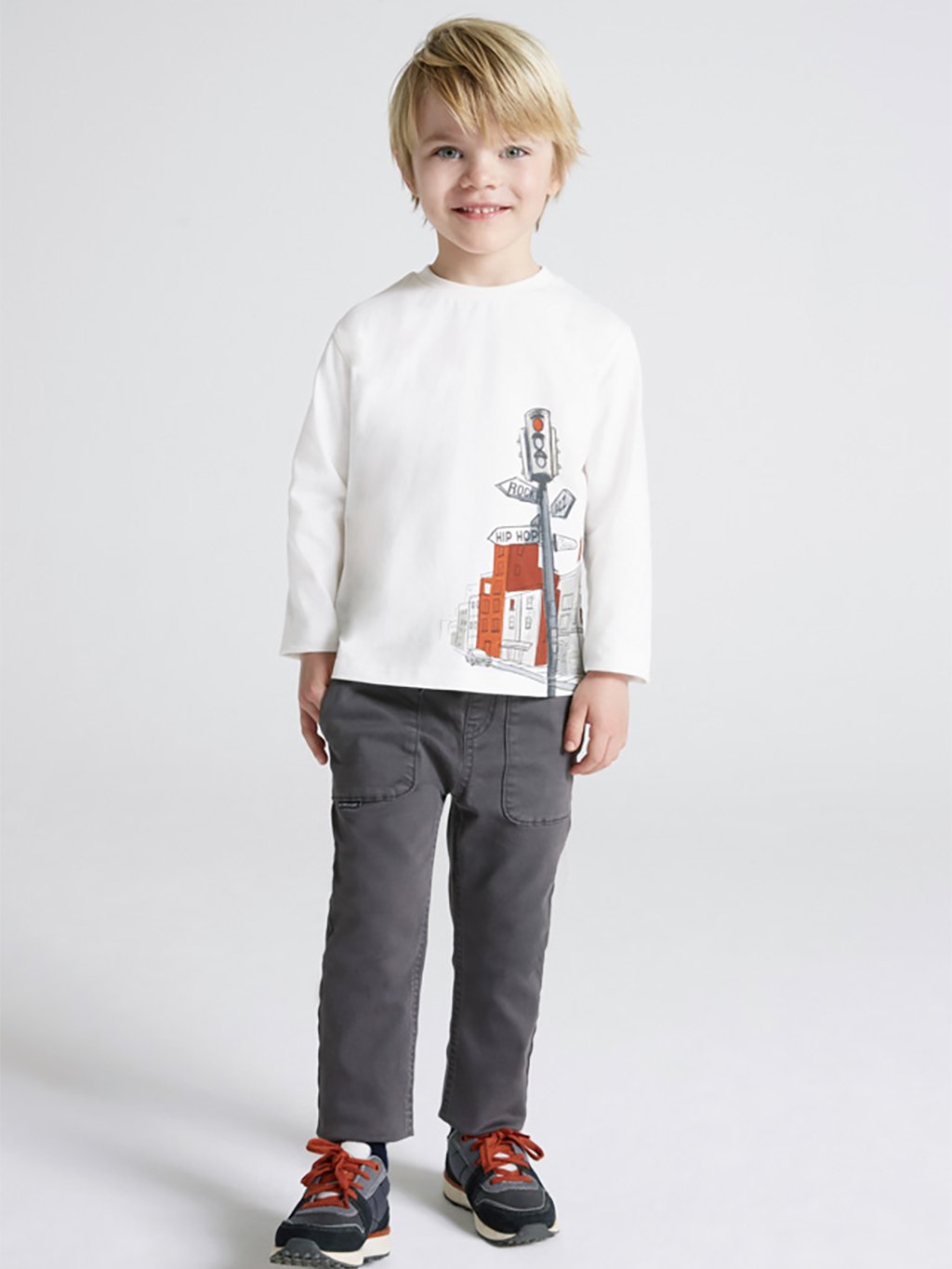 Dlouhé kalhoty typu jogger pro chlapce, nahoře volné, užší ke kotníkům. Kalhoty s nápadnými kapsami mají elastický pas se stahovací šňůrkou. Obsahují udržitelnou bavlnu.Doplňkové parametry
