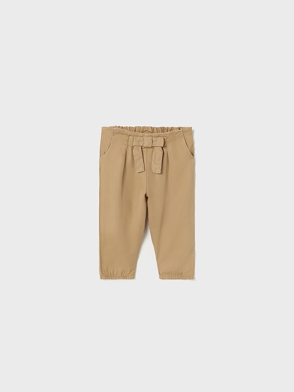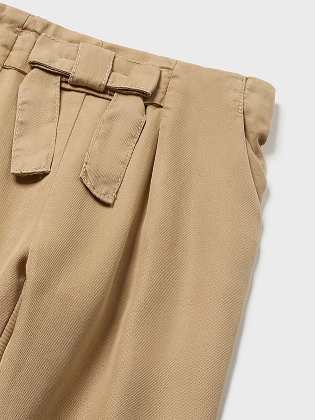 Dlouhé dívčí kalhoty volného střihu. Nastavitelná guma v pase pro úpravu velikosti. Lem s elastickým pasem pro lepší přizpůsobení. Dekorativní prvky: mašle.Doplňkové parametry