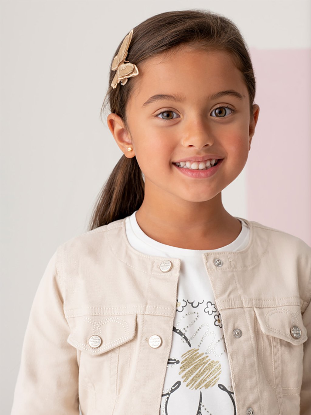 Bundička obsahuje udržitelnou bavlnu. Dívčí bunda s dlouhým rukávem. Kulatý výstřih. Zapínání na knoflík na přední straně. Ozdobné umělé přední kapsy.Doplňkové parametry