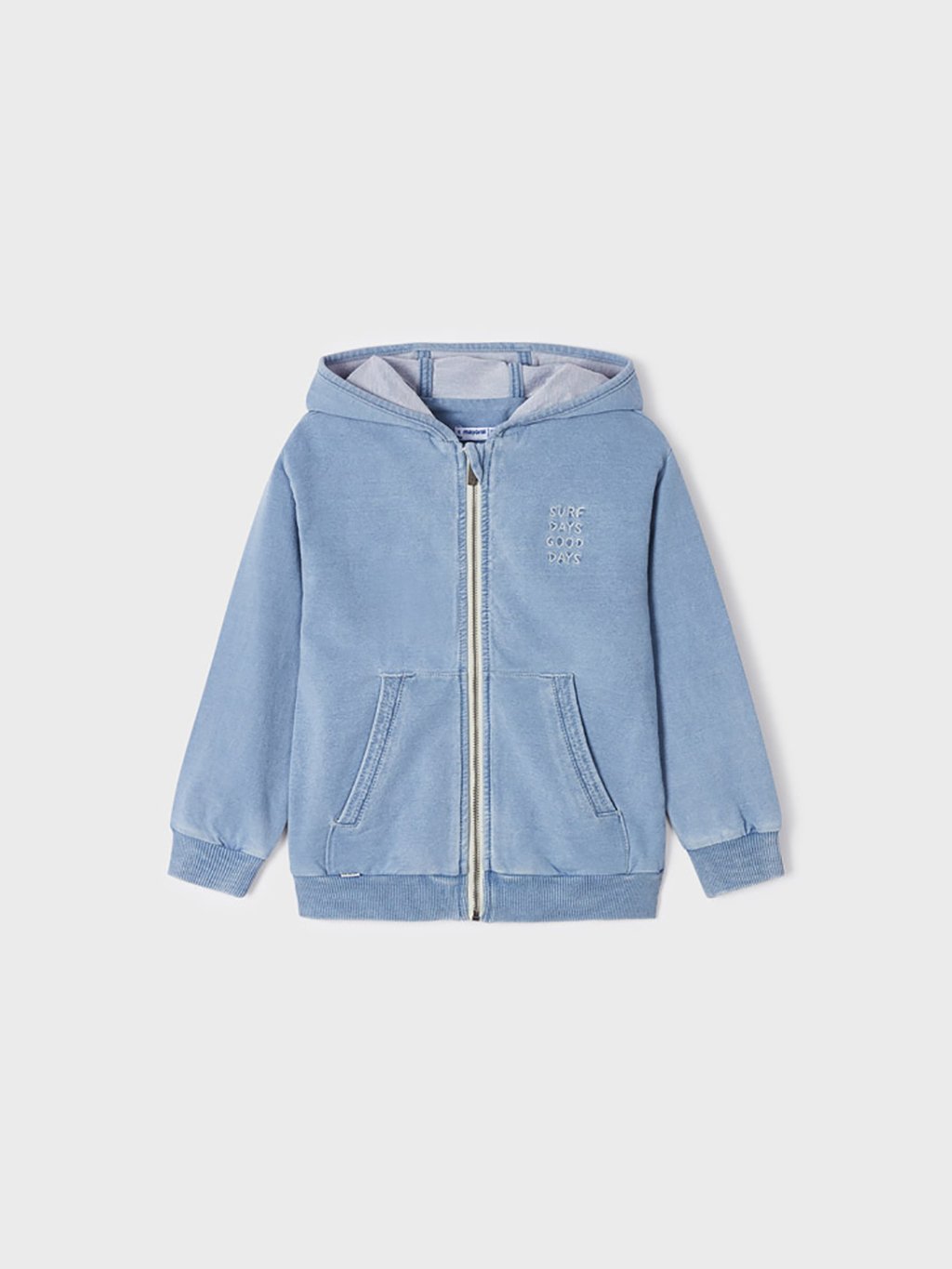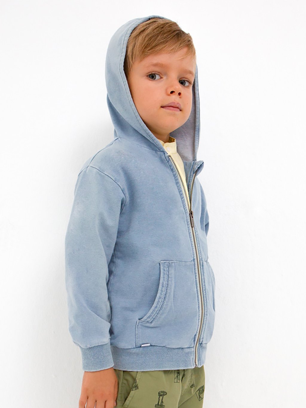 Mikina s dlouhým rukávem a kapucí pro chlapce. Centrální přední zapínání na skrytý zip. Měkká strečová bavlněná tkanina.Doplňkové parametry