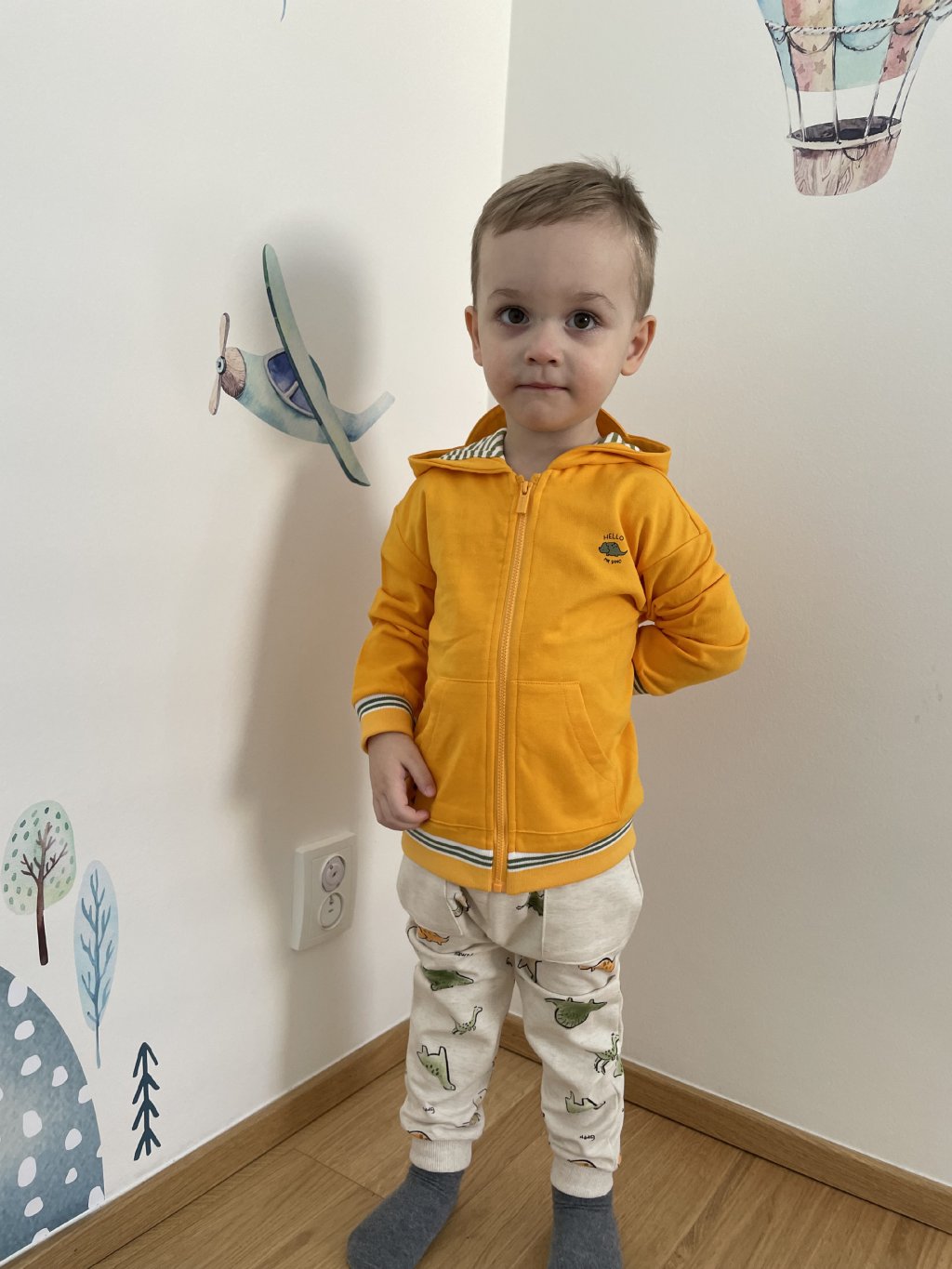 Mikina s dlouhým rukávem a kapucí pro chlapečka. Přední středové zapínání na zip. Boční kapsy.Doplňkové parametry