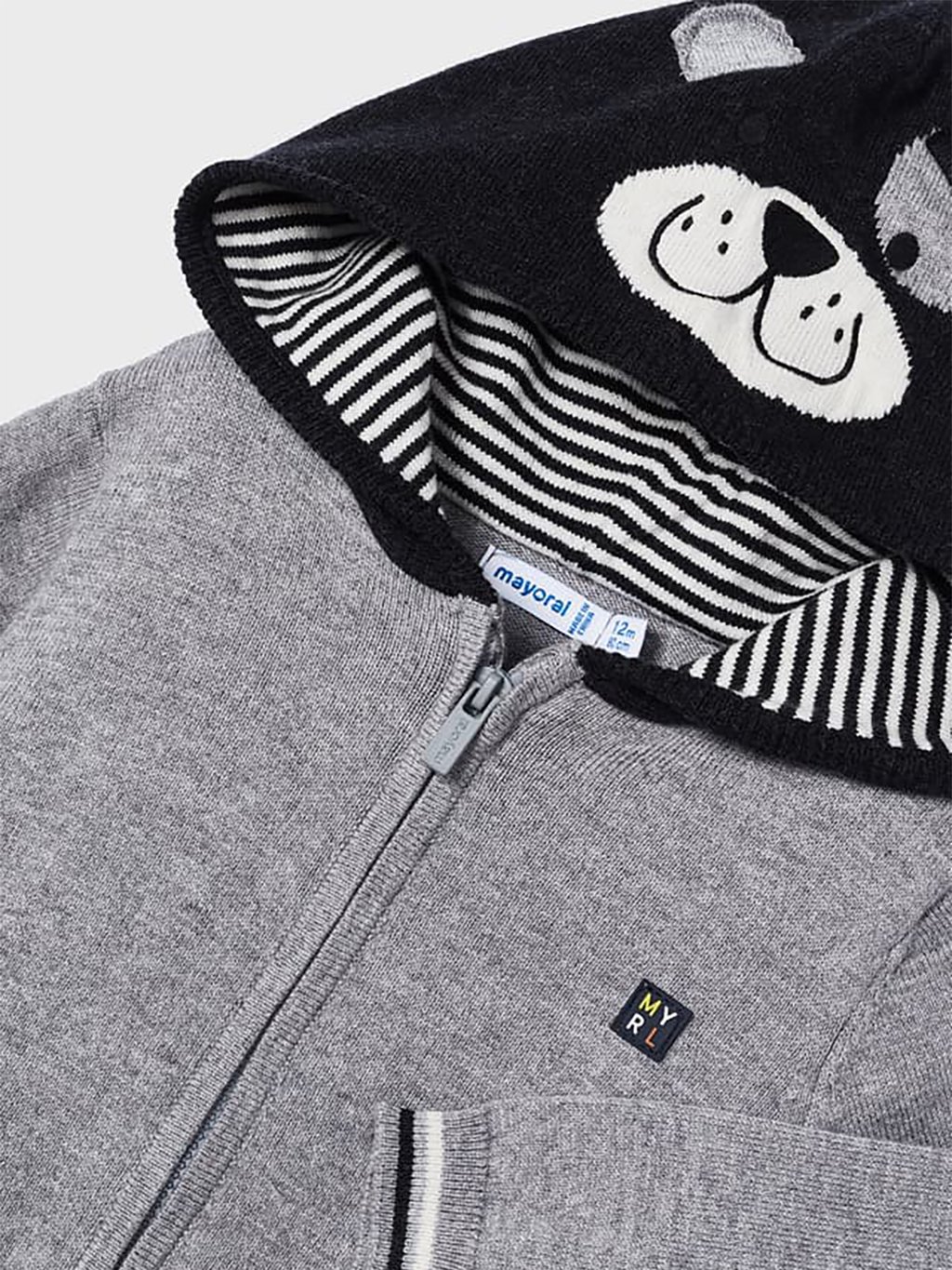 Pletený svetr s kapucí pro malého chlapečka. Přední středové zapínání na zip.Doplňkové parametry