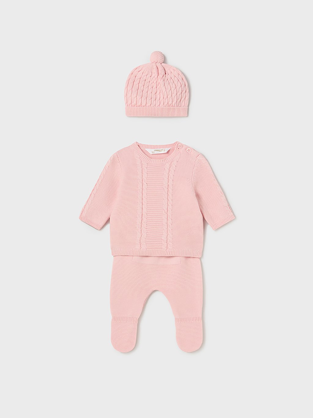 Dívčí pletený komplet polodupaček, svetru a čepice Mayoral