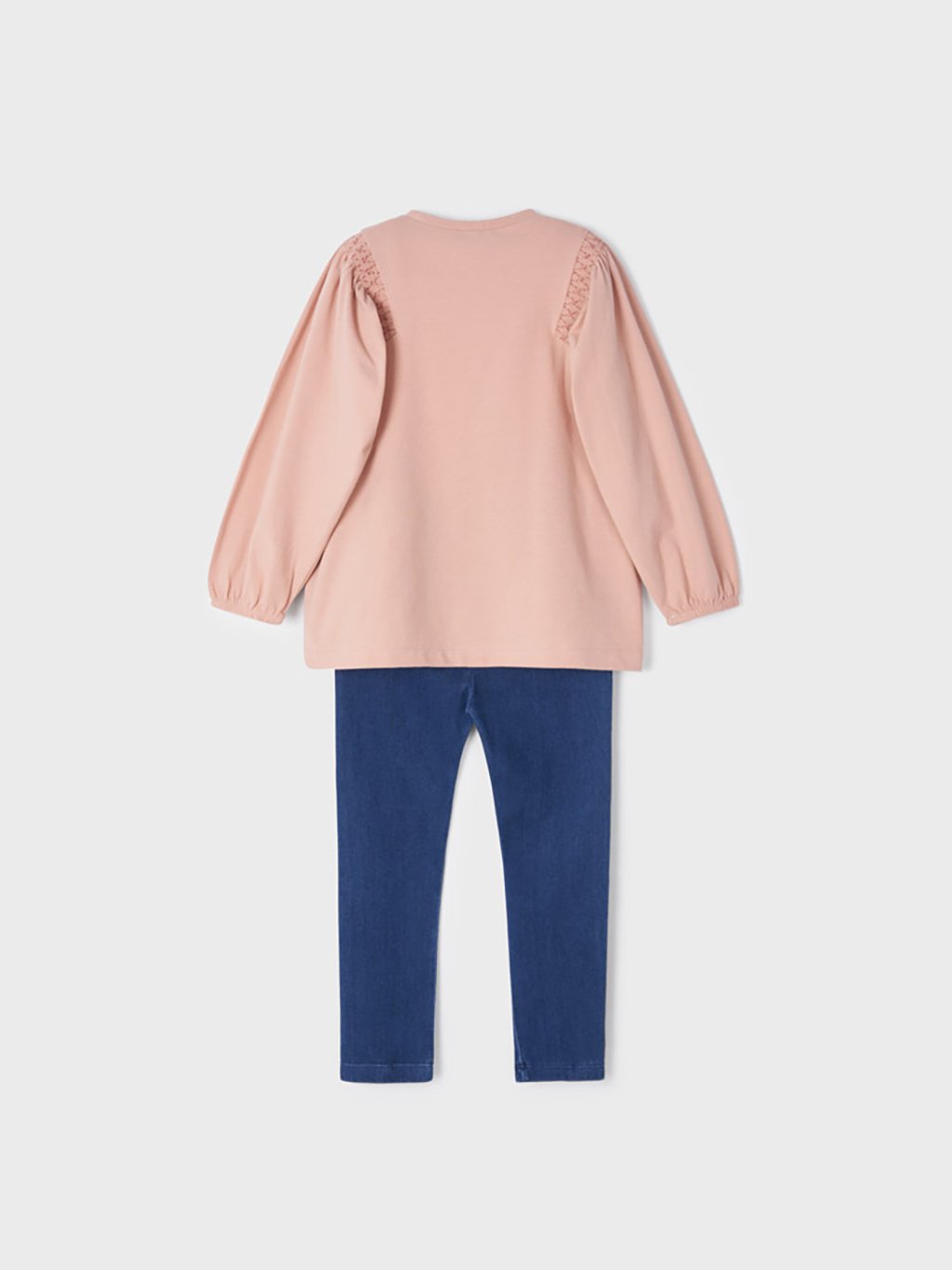 Dvoudílný set pro dívku skládající se z trička a legín. Tričko s dlouhým nabíraným rukávem. Legíny s gumou v pase. Produkt obsahuje udržitelnou bavlnu.Doplňkové parametry