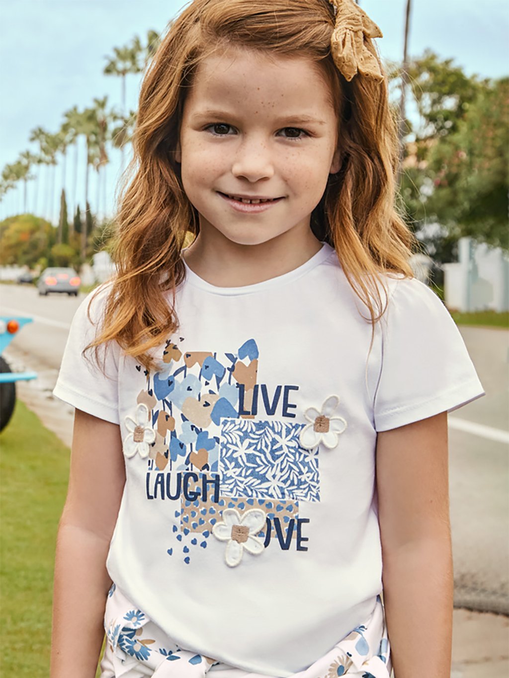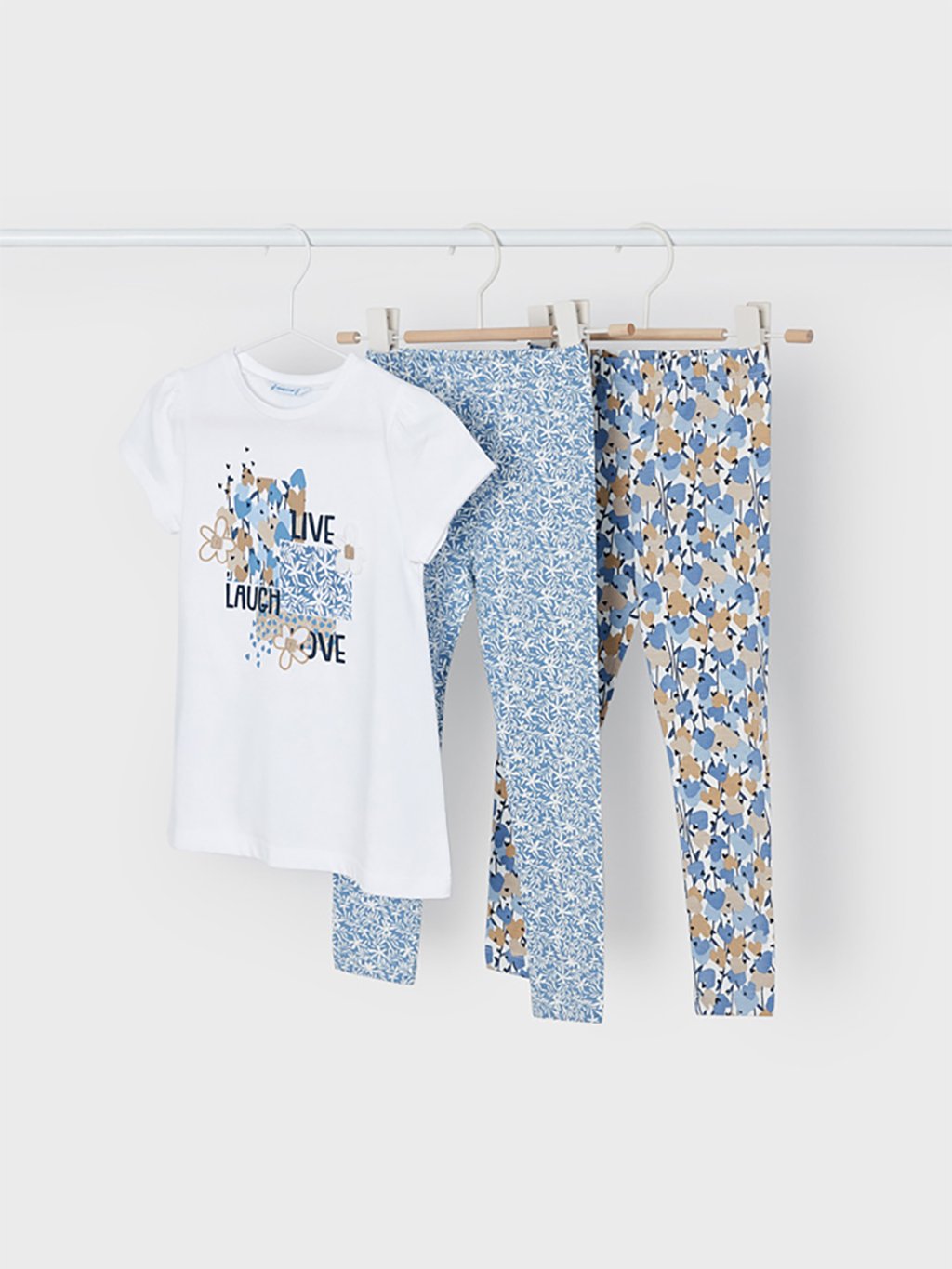 Originální třídílná sada pro holčičku. Tričko s krátkým rukávem a kulatým výstřihem. Dívčí legíny s elastickým pas pro lepší přizpůsobení postavě.Doplňkové parametry