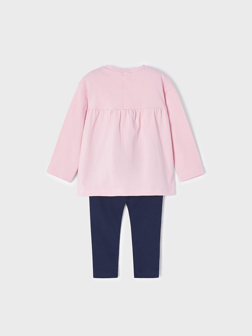 Dvoudílná souprava pro malé slečny složená z trička a legín. Triko s dlouhým rukávem a zapínáním na zádech. Legíny s gumou v pase pro větší pohodlí při nošení.Doplňkové parametry