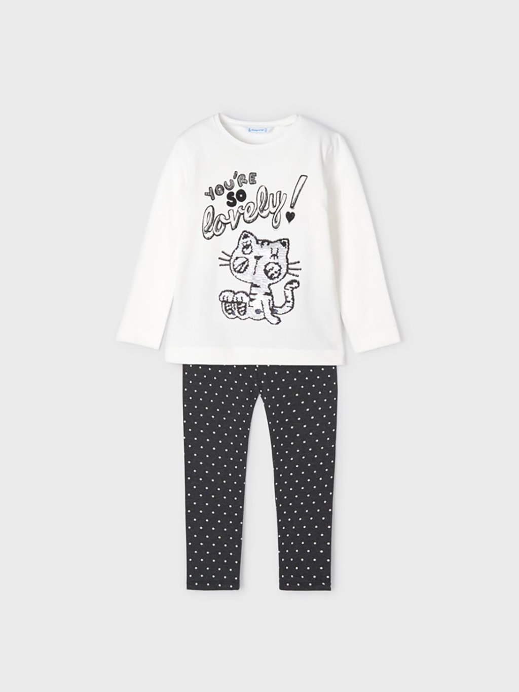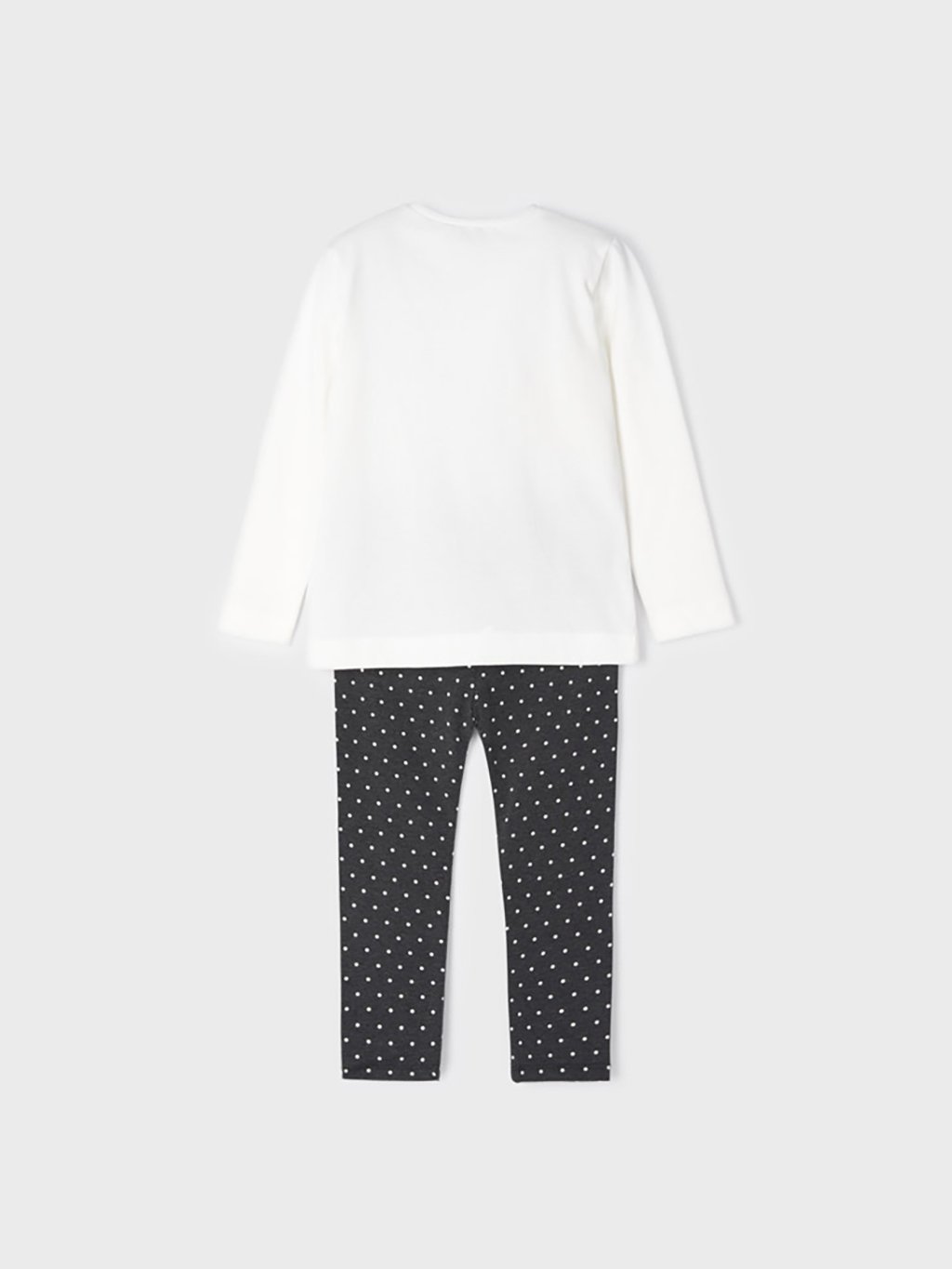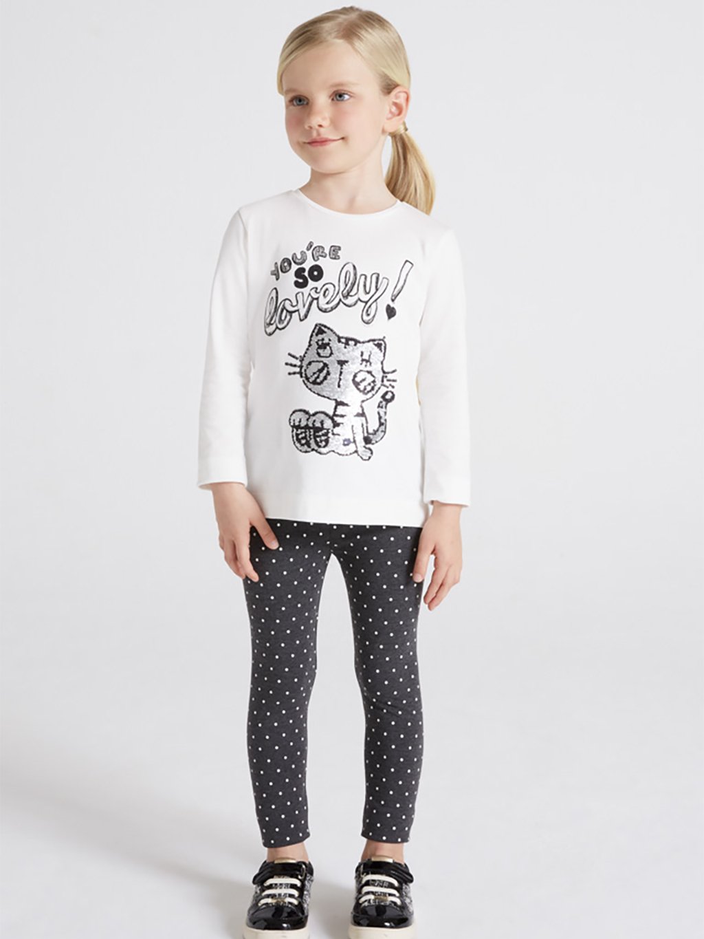 Dvoudílný set pro dívku skládající se z trička a legín. Tričko s dlouhým rukávem a kulatým výstřihem. Legíny s gumou v pase pro větší komfort při nošení.Doplňkové parametry