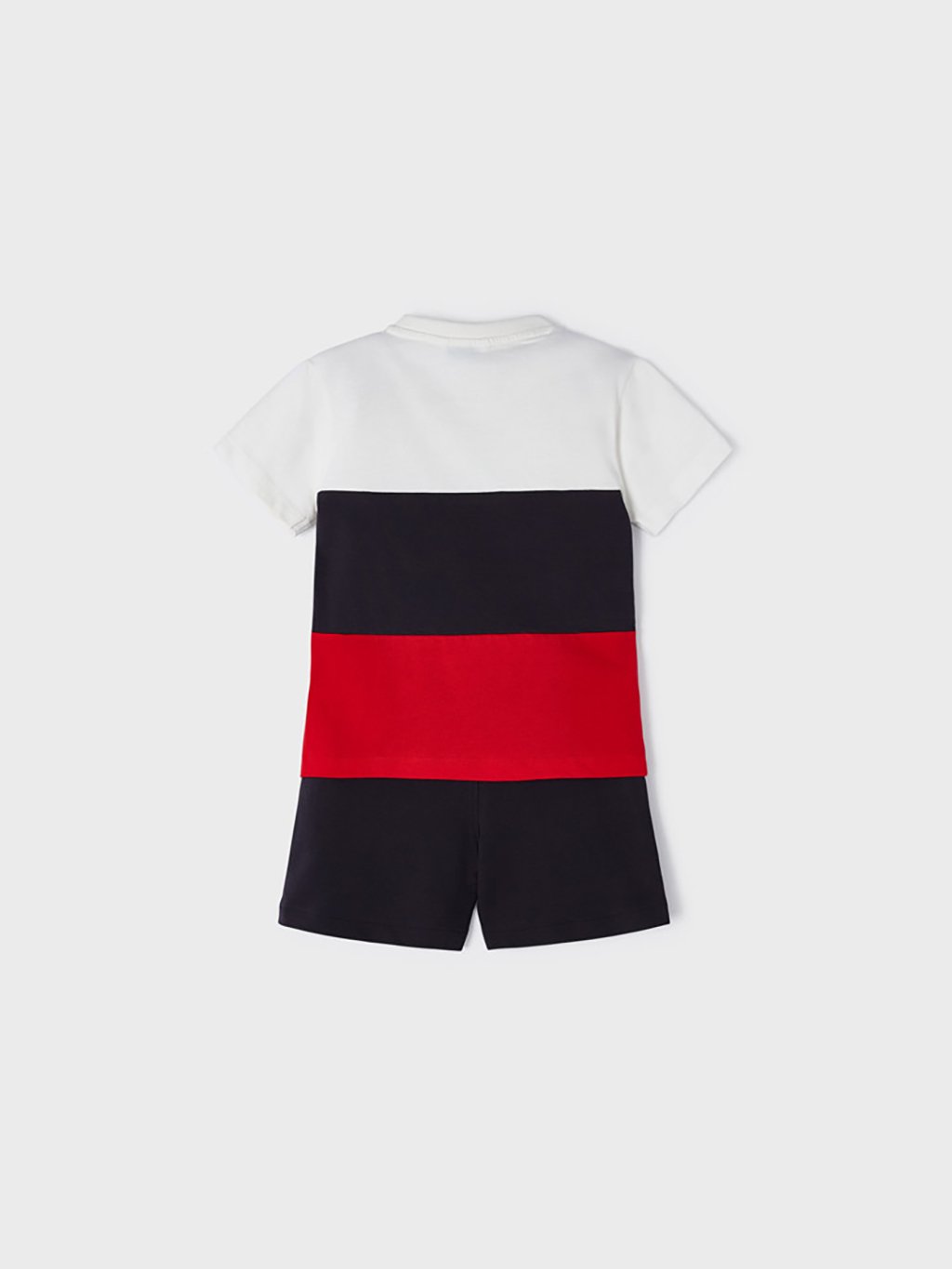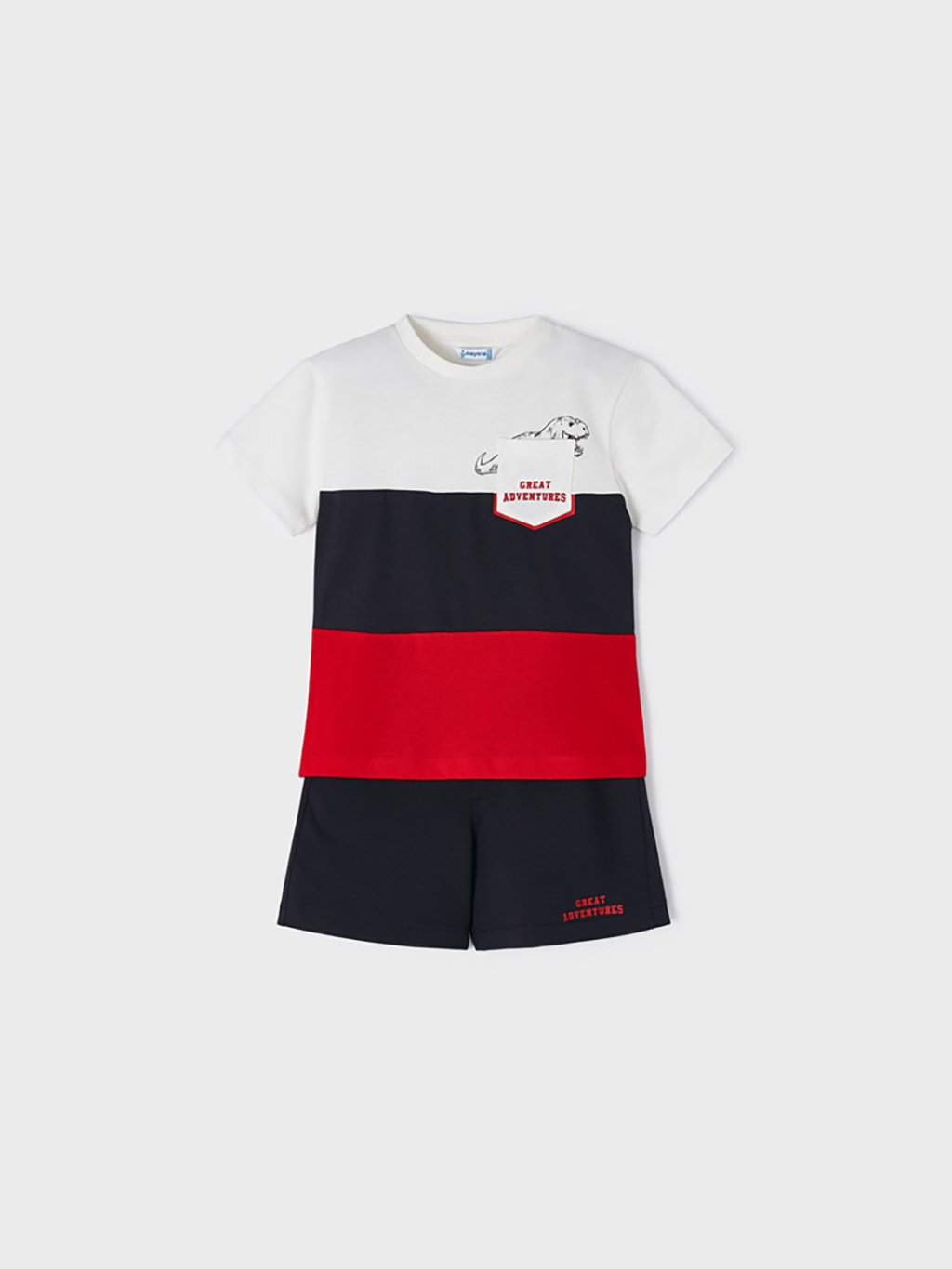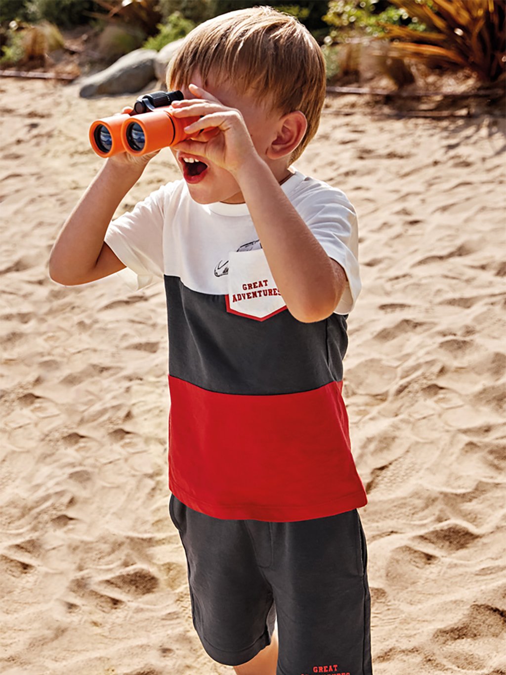 Chlapecký set trička a kraťasů. Chlapecké tričko s krátkým rukávem a kulatým výstřihem. Funkční kapsa na přední straně. Bermudy s nastavitelnou vnitřní šňůrkou v pase.Doplňkové parametry