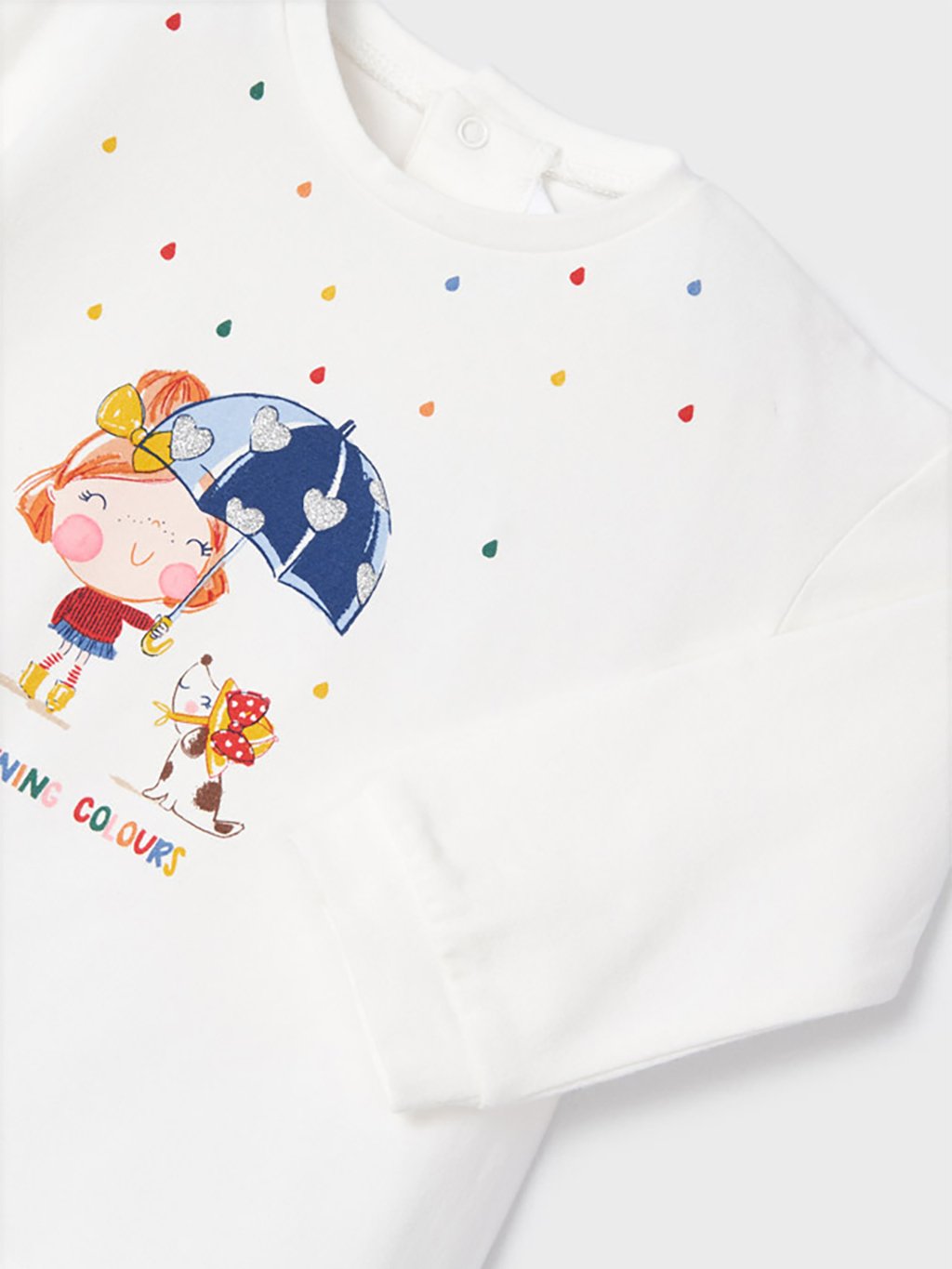 Originální třídílná sada pro malé holčičky. Set se skládá z trička s dlouhým rukávem a kulatým výstřihem, legín a vesty. Triko má zapínání na rameni. Vesta má přední středové zapínání na zip. Legíny jsou ze semišové tkaniny.Doplňkové parametry