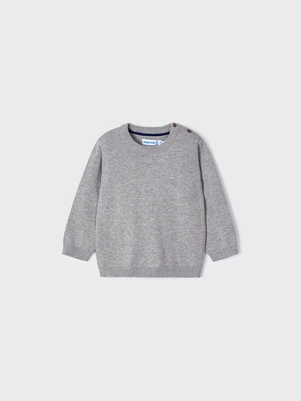 Svetřík s dlouhým rukávem a kulatým výstřihem pro chlapečky. Zapínání na knoflíky na rameni. Svetr je ze 100% udržitelné bavlny.Doplňkové parametry