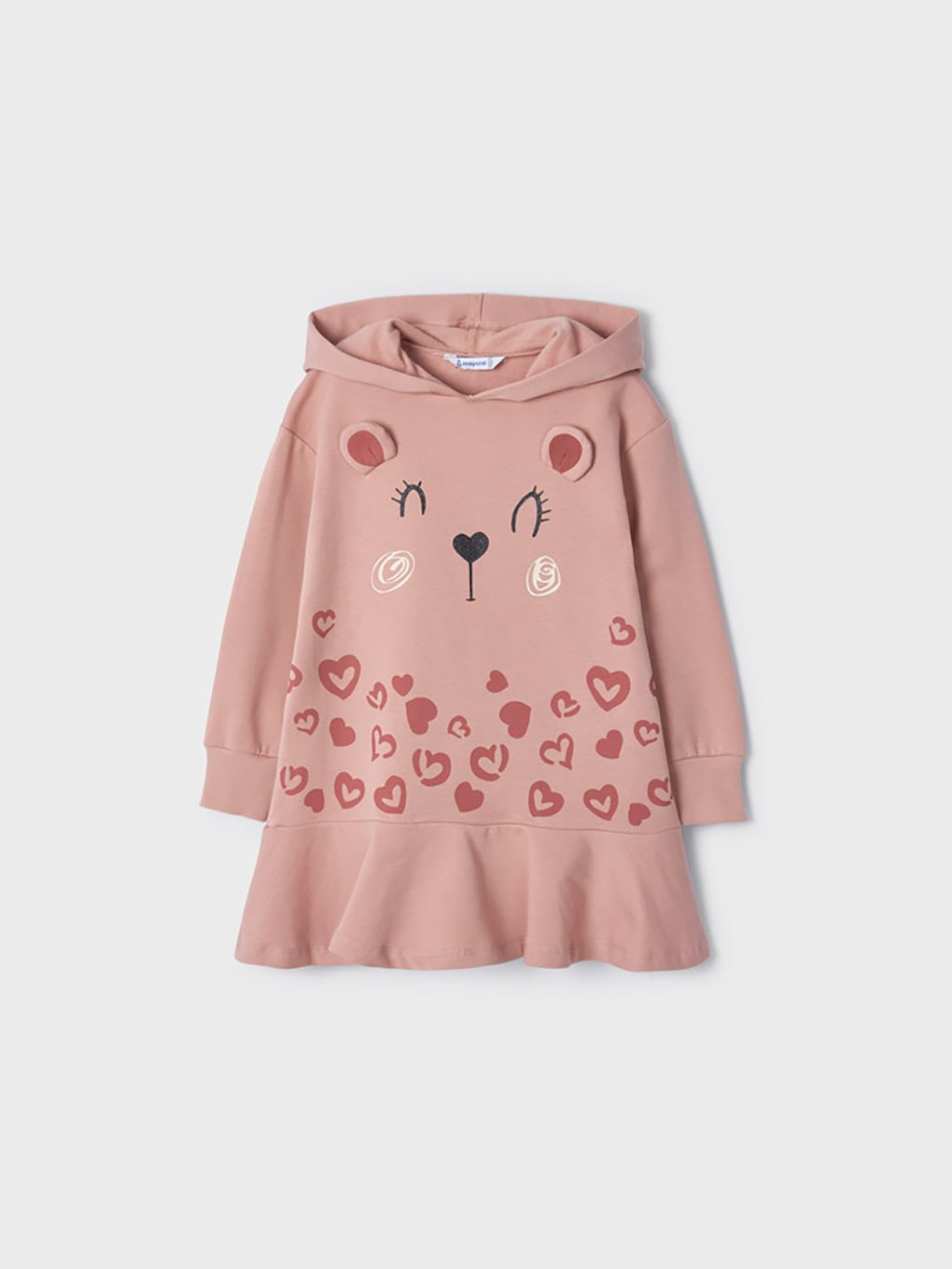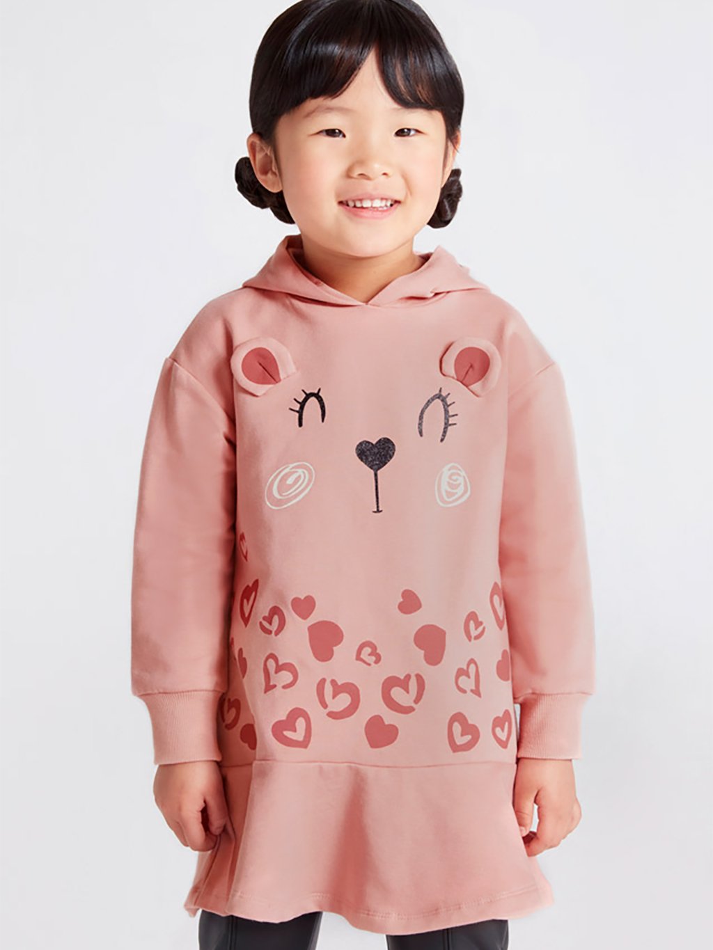 Dívčí teplákové šaty s dlouhým rukávem a kapucí. Šaty obsahují udržitelnou bavlnu.Doplňkové parametry