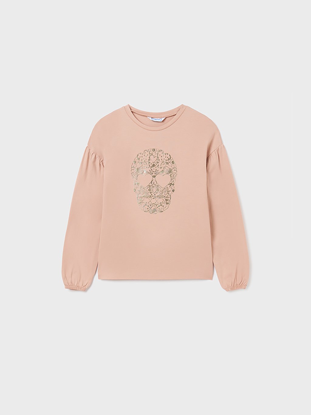 Dívčí triko s dlouhým rukávem a potiskem lebky Mayoral