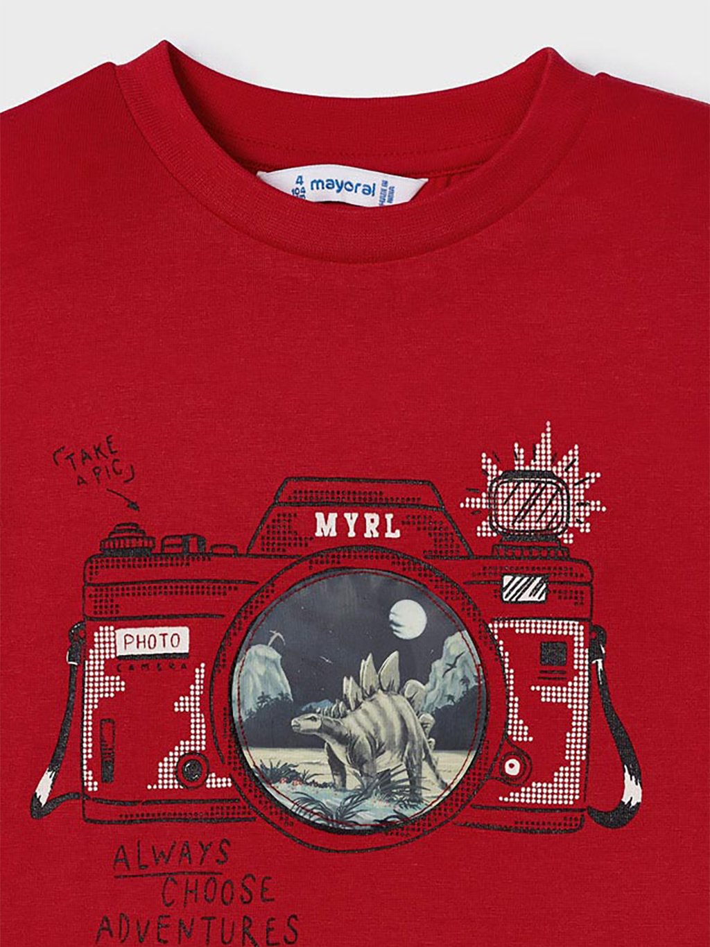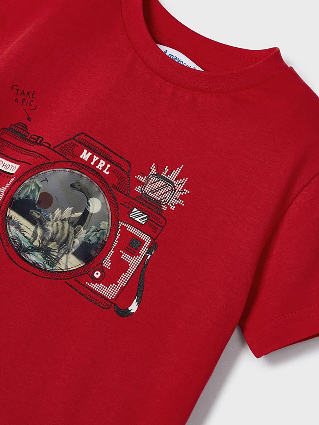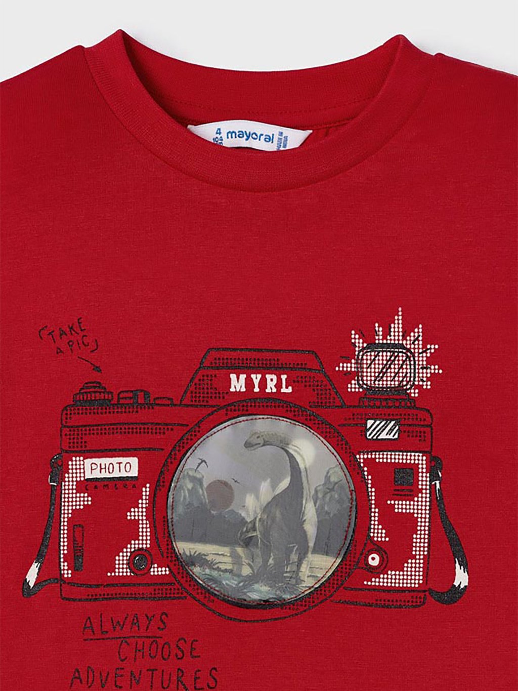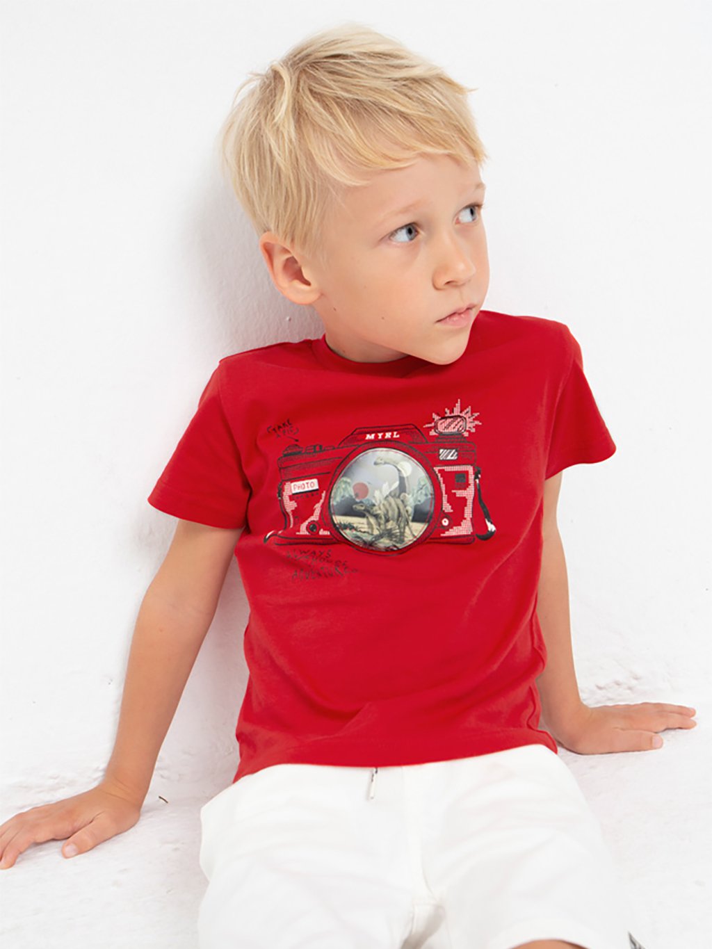 Tričko s krátkým rukávem a interaktivním motivem pro kluka. 100% bavlněná tkanina.Doplňkové parametry