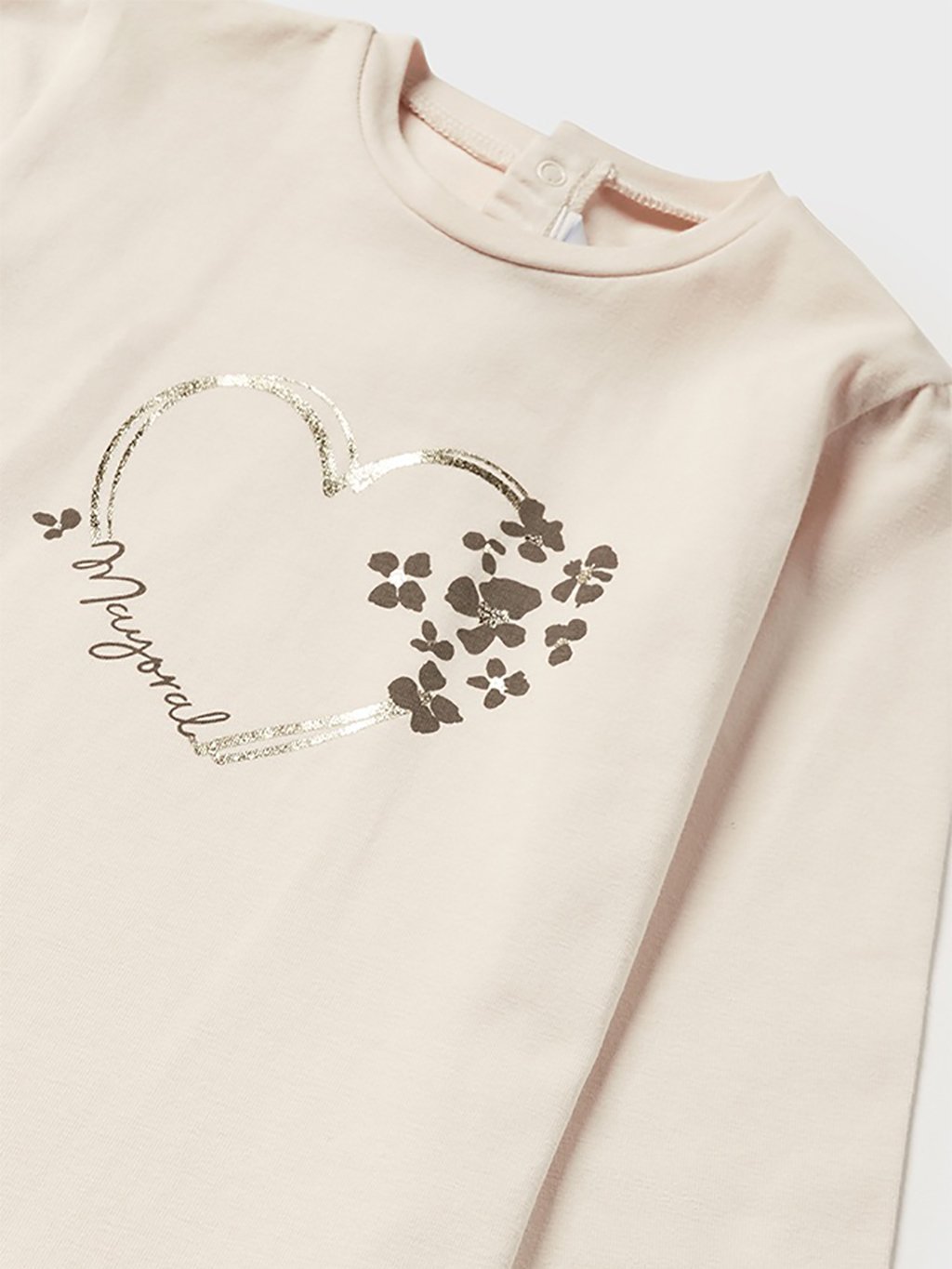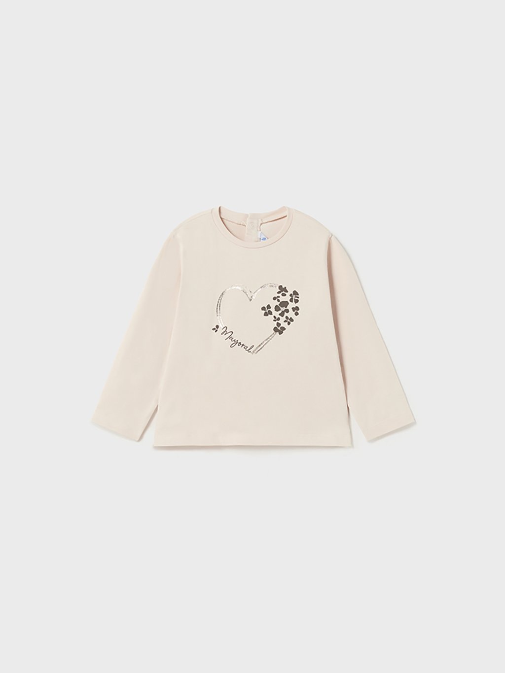 Dívčí triko s dlouhým rukávem a kulatým výstřihem. Triko má na přední straně potisk srdce. Na zadní straně má zapínání na patentky pro snazší oblékání.Doplňkové parametry