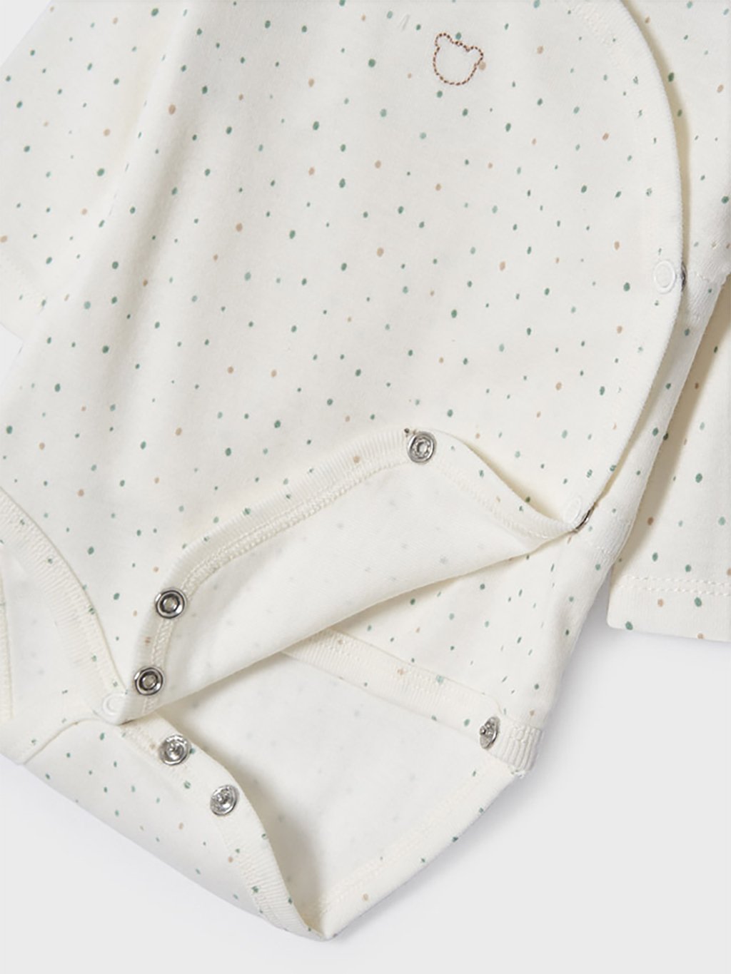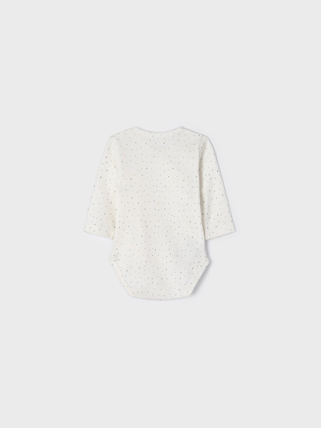 Zavinovací body s dlouhým rukávem pro novorozence. Zapínání na patentky v rozkroku pro snadnější oblékání. Body je ze 100% udržitelné bavlny.Doplňkové parametry